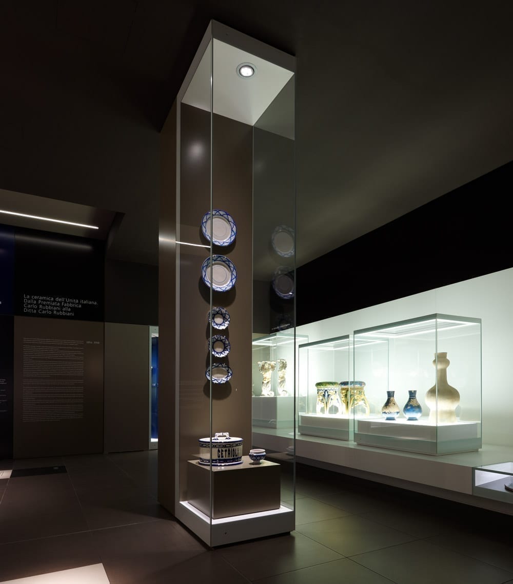 Le musée – dédié au professeur Cirillo Mussini, président du Gruppo Concorde et disparu il y a quelques années – trouve son origine dans le Museo della Fabbrica Rubbiani du XIXe siècle, une exposition d’objets raffinés en céramique de Sassuolo, enrichie de pièces de Faenza et d’autres villes italiennes à vocation céramique (Casteldurante, Castelli, Pesaro, Savone, Carpi et Modène). Federico Argnani, premier chercheur de cette collection, nous rappelle que l’intention initiale, identique à celle d’aujourd’hui, était de constituer un témoignage prestigieux de l’héritage historique de la manufacture céramique de Sassuolo, pour que chaque client puisse comprendre comment le passé et le présent se conjuguent dans la production contemporaine dans une solide tradition artistique et manufacturière, « pour mieux témoigner de l’importance de la Fabbrica di Sassuolo et lui rendre un honneur perpétuel ». Cette opération de marketing avant la lettre, confirmée aujourd’hui, s’enrichit également du caractère fortement mercatique de la région : en effet, la Galleria Marca Corona recueille et conserve cet esprit du territoire qui fait partie intégrante du succès de la céramique de Sassuolo, à la fois héritier et successeur d’une histoire unique aussi bien à l’intérieur du district qu’à l’extérieur.
