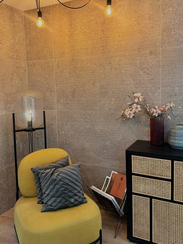 Je pense que plusieurs facteurs entrent en jeu. Tout d’abord, la céramique s’est énormément diversifiée ces dernières années. Le carrelage propose une vaste gamme de design, de finitions et de couleurs et, avec une telle variété de choix, il est impossible de ne pas trouver ce qui convient. Ensuite, la céramique s’adapte parfaitement à différents supports, que ce soit en intérieur, en extérieur, dans des espaces commerciaux ou des propriétés privées, pour les sols, les murs et même les plafonds. Elle trouve sa place partout et puis c’est un matériau à la fois résistant et facile à entretenir.