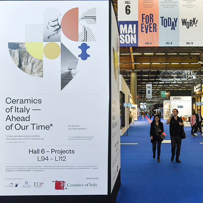 Le thème de cette édition de Maison&Objet a été Take care, décliné en quatre macro-thématiques : prendre soin de nous-mêmes, de la nature, des autres et de nos compétences. Par sa présence à Maison&Objet, la céramique italienne s’inscrit de plein droit dans le paysage du mode de vie contemporain, dans un cadre qui relie les acteurs internationaux de la décoration, du design et de l’art de vivre. La participation au salon de Paris témoigne de l’importance stratégique du marché français, qui représente 15 % des exportations italiennes de céramique.