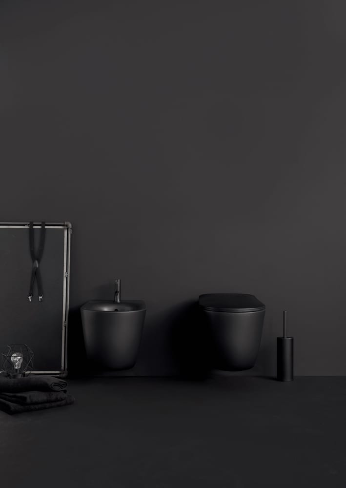 06. Ceramica Flaminia traite la couleur comme un contenu intrinsèque du projet. De plus, avec la nouvelle proposition Carbone, un noir intense et résolument mat, elle introduit une force magnétique dans la salle de bains, celle d’un retour aux origines. Les eaux de traitement de la céramique que produit l’entreprise sont filtrées et épurées, puis réutilisées dans le cycle de production.