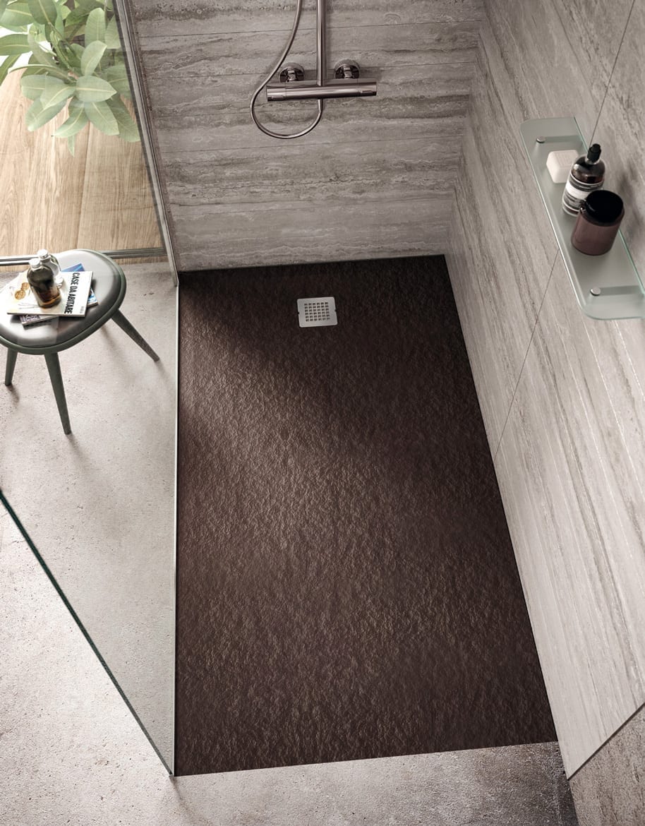 Cette année, parmi les collections de grès qui évoquent les surfaces naturelles, les plus en vue sont celles qui reproduisent les veines, l’éclat et les nuances des variétés de marbres et de pierres, même les plus précieuses (11). Cette tendance, lancée il y a quelques années, continue à passionner le public et les concepteurs. Dans de nombreux cas, il ne s’agit pas d’une simple imitation, mais d’une relecture des typologies lithiques dans le but de créer quelque chose d’absolument nouveau. Le graphisme numérique permet d’imprimer des motifs sur la surface céramique sans contact direct, comme pour le papier et les tissus, et de créer des matériaux en grès tout à fait inédits. Résultat : matière compacte, couleurs homogènes, surface veloutée au toucher pouvant devenir brillante et lumineuse (1) ou mate (6, 07). Nombre de collections proposent également des marbres avec des bas-reliefs travaillés (05).