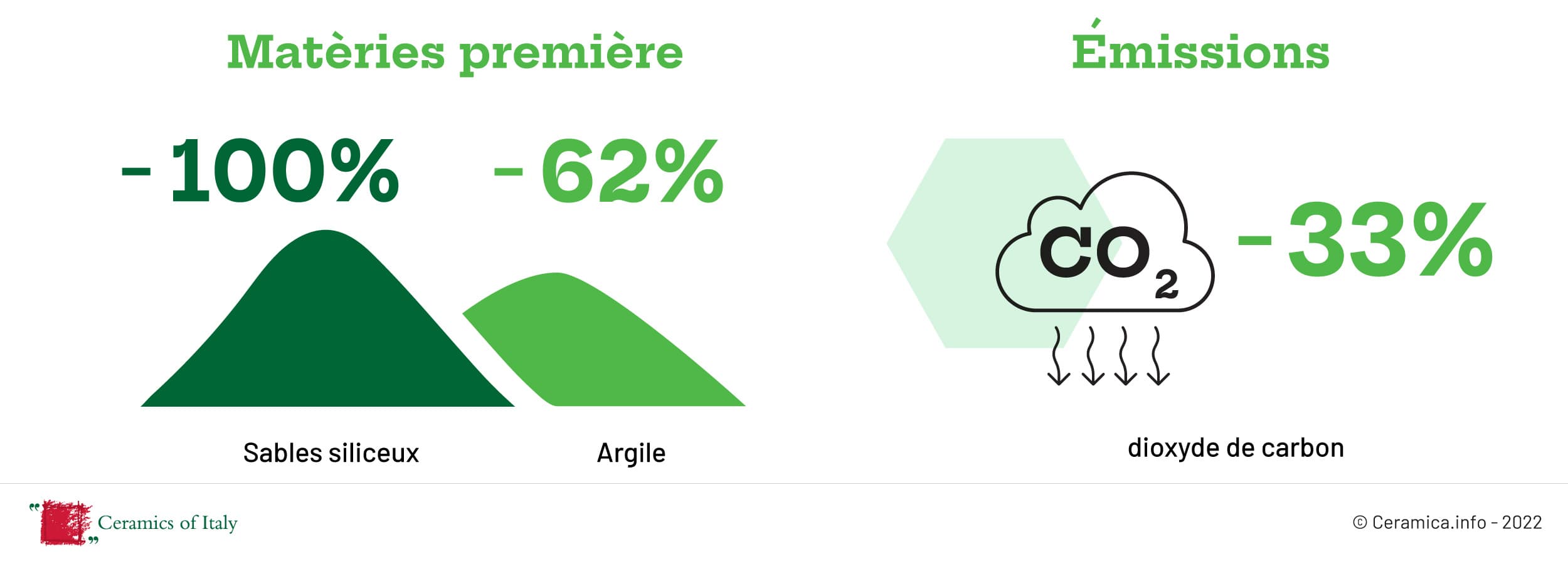 Les carreaux WINCER garantissent une économie importante de ressources naturelles grâce au remplacement total des feldspaths et des sables siliceux et au remplacement partiel des argiles par des déchets de verre et de carreaux crus. Cet avantage se traduit par une amélioration globale de la performance environnementale du secteur céramique : moindre exploitation de matières premières naturelles, moindre consommation d’énergie et réduction des émissions de CO2.