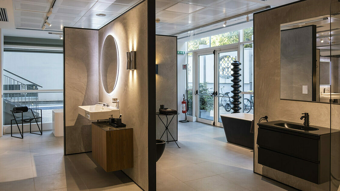 Situé au siège social de Milan, via Borsi, dans un bâtiment aux baies vitrées, très lumineux et doté de miroirs d’eau, le nouveau showroom Ideal Standard est un espace de communication de la marque, créé pour satisfaire aux exigences de conception des professionnels. Il est conçu comme un lieu de travail, un espace narratif où l’on peut parler du design et de la technologie qui ont toujours guidé la recherche de l’entreprise. Là, les architectes et les partenaires commerciaux peuvent avoir une vision organique des propositions Ideal Standard, à commencer par la série Atelier Collections, grâce à une galerie imaginée pour mettre en valeur toutes les variantes et toutes les solutions possibles.