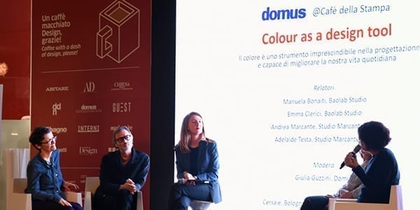 La conversation au Café della Stampa du BagnoOggiDomani au Cersaie 2025 s'est concentrée sur le thème du bien-être et du rôle des matériaux naturels et de la couleur dans la qualité perceptive des espaces