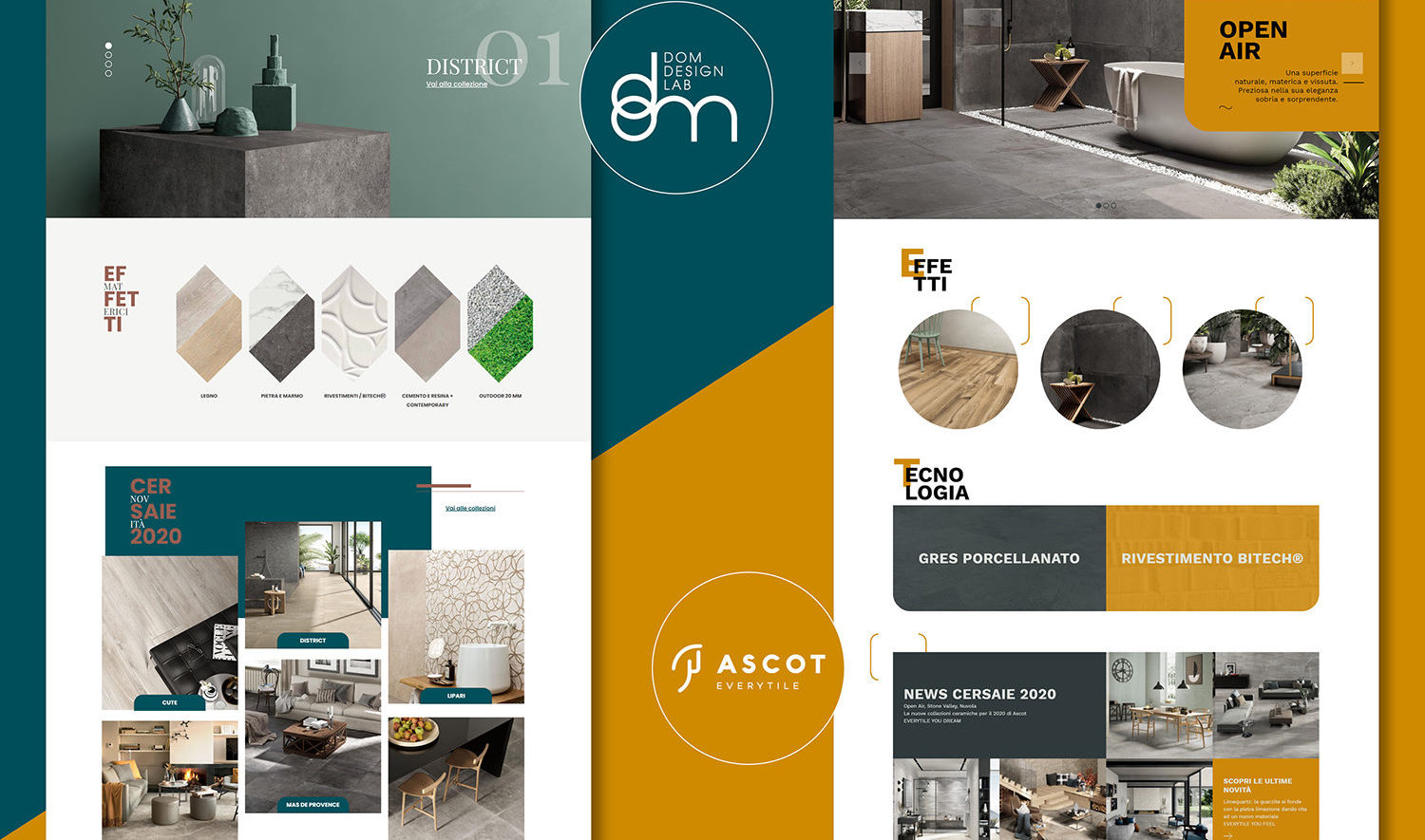 Fornendo stimoli e soluzioni, in grado di accompagnare in percorsi sempre più focalizzati ed efficaci, Ascot Everytile si presenta con un sito di consultazione chiara, user friendly ed un design che ben interpreta il nuovo look associato al restyling del logo, dinamico, giovane, generalista. Dom Design Lab, proponendo un’interpretazione immediata delle collezioni, facilmente accessibile, completa e dal design pulito e ricercato, interpreta il taglio più progettuale del brand.