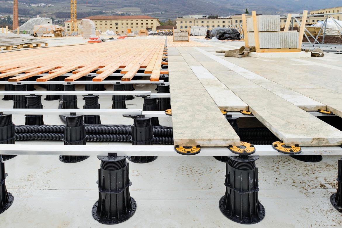 Il cuore della struttura sotto a un pavimento flottante da record realizzato con supporti Impertek
