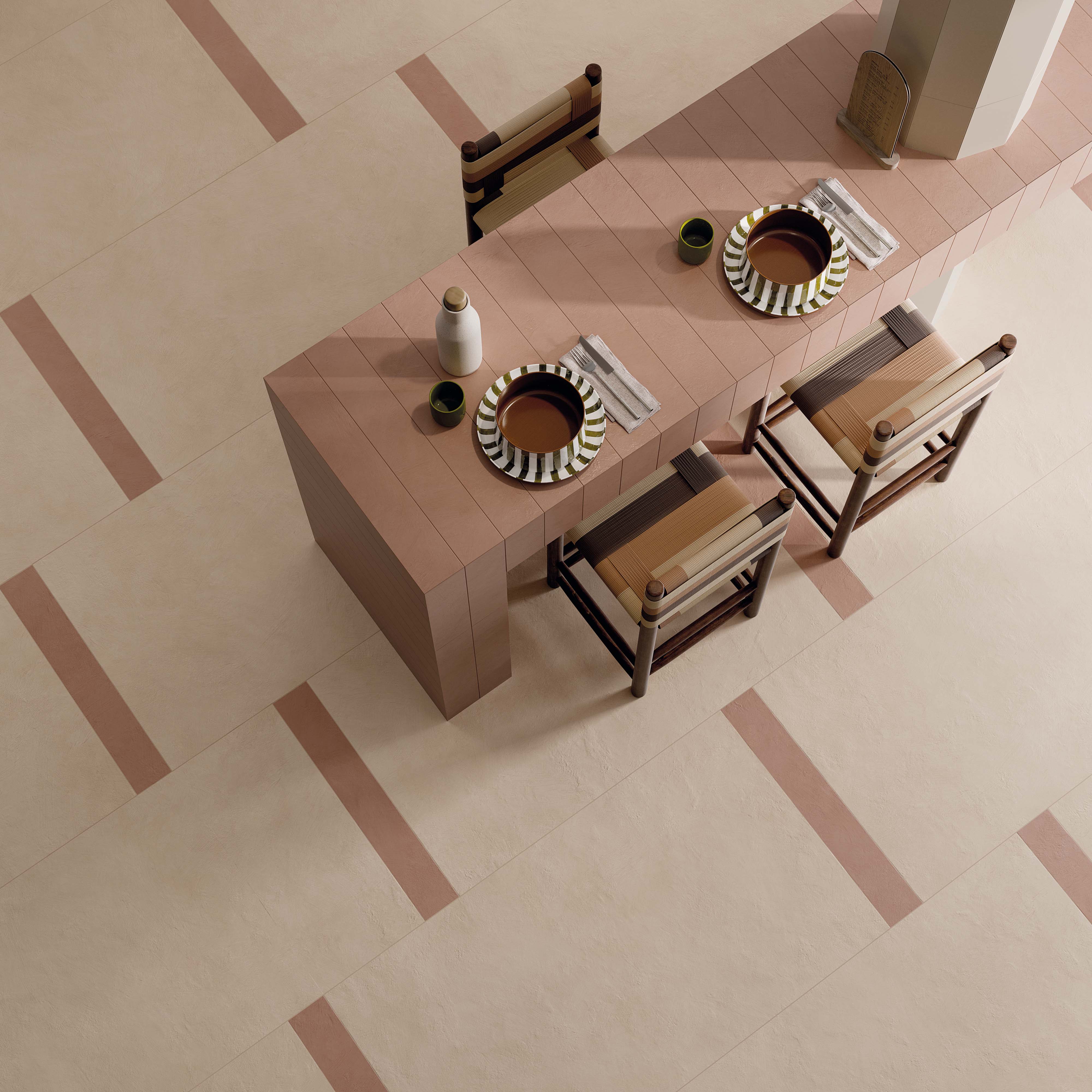 La collezione Alterego, complementare all’intero catalogo di superfici firmate da ABK, si confronta con il tema del colore in un’ottica progettuale aperta alla contaminazione creativa. La gamma Alterego propone 10 tonalità di tendenza declinate su una superficie che richiama le sensazioni materiche delle resine stese manualmente. Le tinte unite selezionate ispirano abbinamenti cromatici, soluzioni compositive e schemi di posa inediti, anche grazie ad una vasta proposta di formati, modulari e da taglio, altro importante plus della collezione.