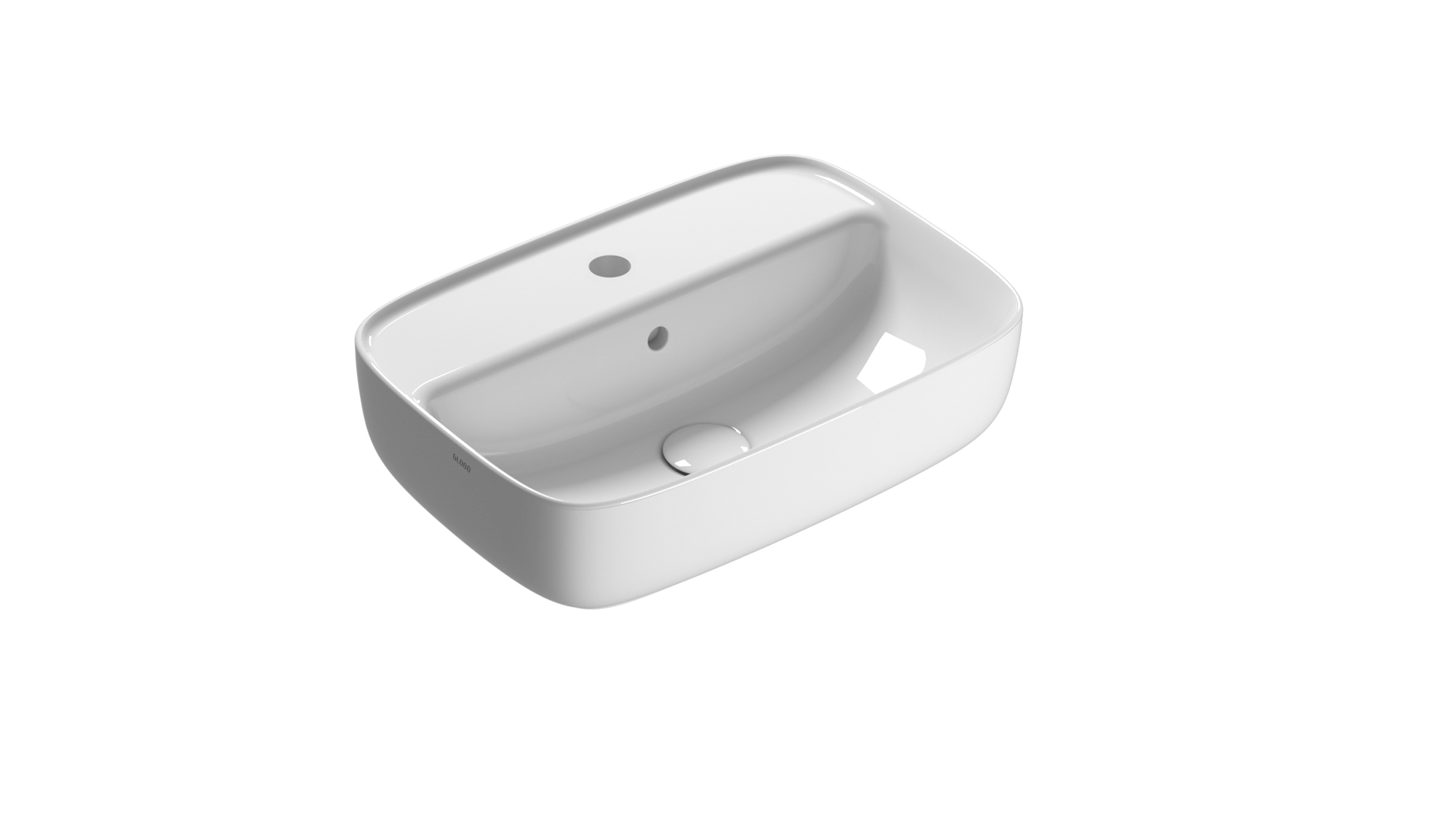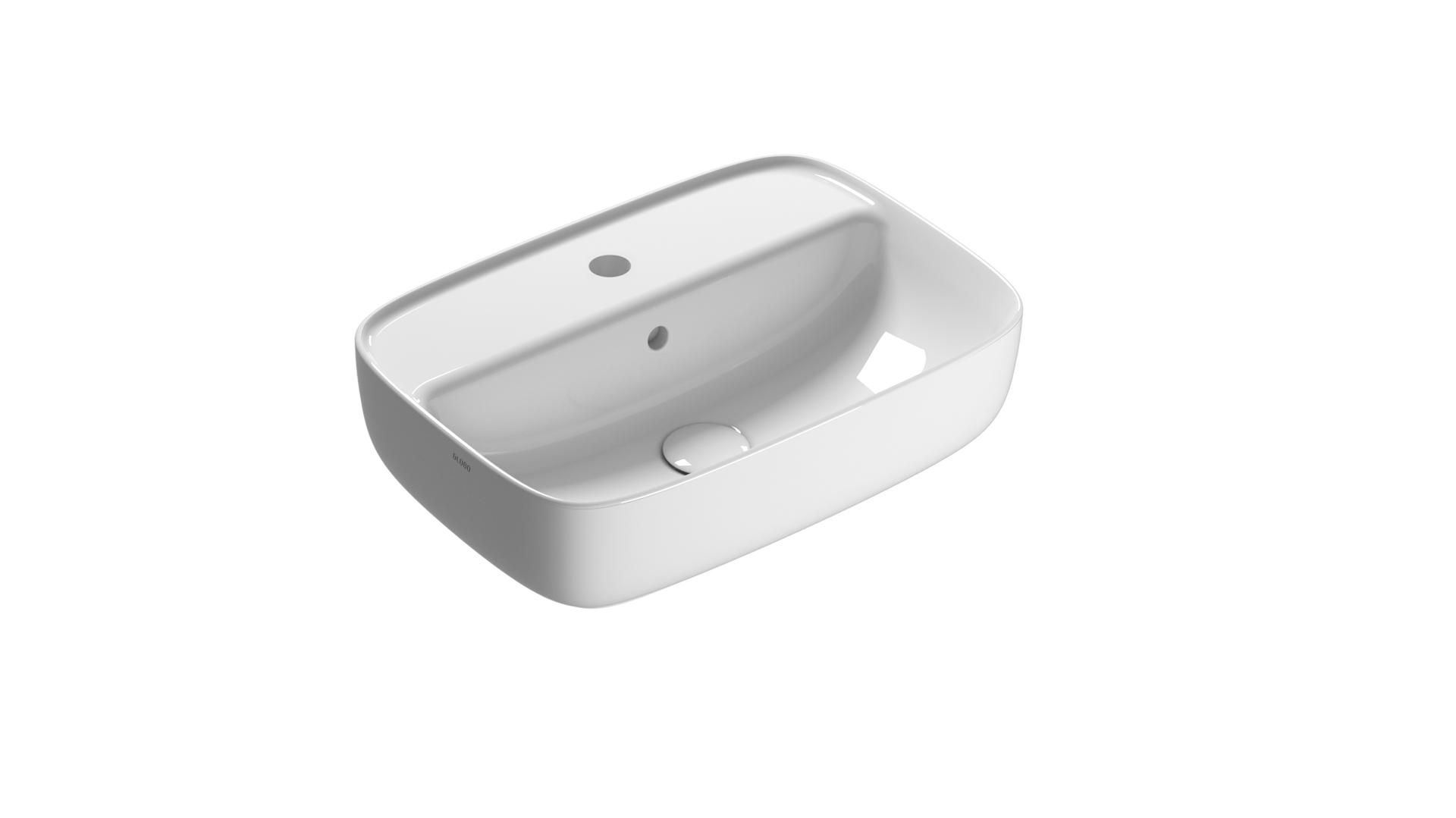 Lavabo 53×37 h14 cm, con piano rubinetteria, monoforo.