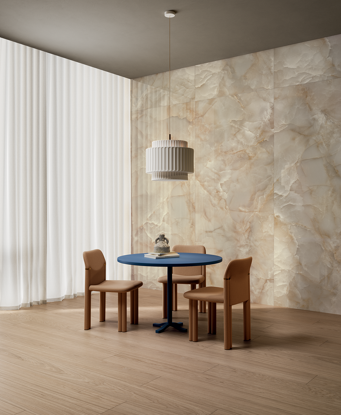 Le lastre ONYX della serie INFINITO 2.0 interpretano la sorprendete eleganza dell’onice con 5 cromie dalla forte carica espressiva. Lussuose ma equilibrate, ispirate alla bellezza antica e raffinata degli alabastri, le lastre ONYX trasformano il sogno di contemporanea eleganza in realtà attraverso dolci sfumature in sintonia con le più attuali tendenze dell’abitare di pregio. La tecnologia Crystal e l’effetto superficiale Polished vestono di una luminosità ricercata le lastre Onyx, amplificando la profondità nascosta nelle sue venature.