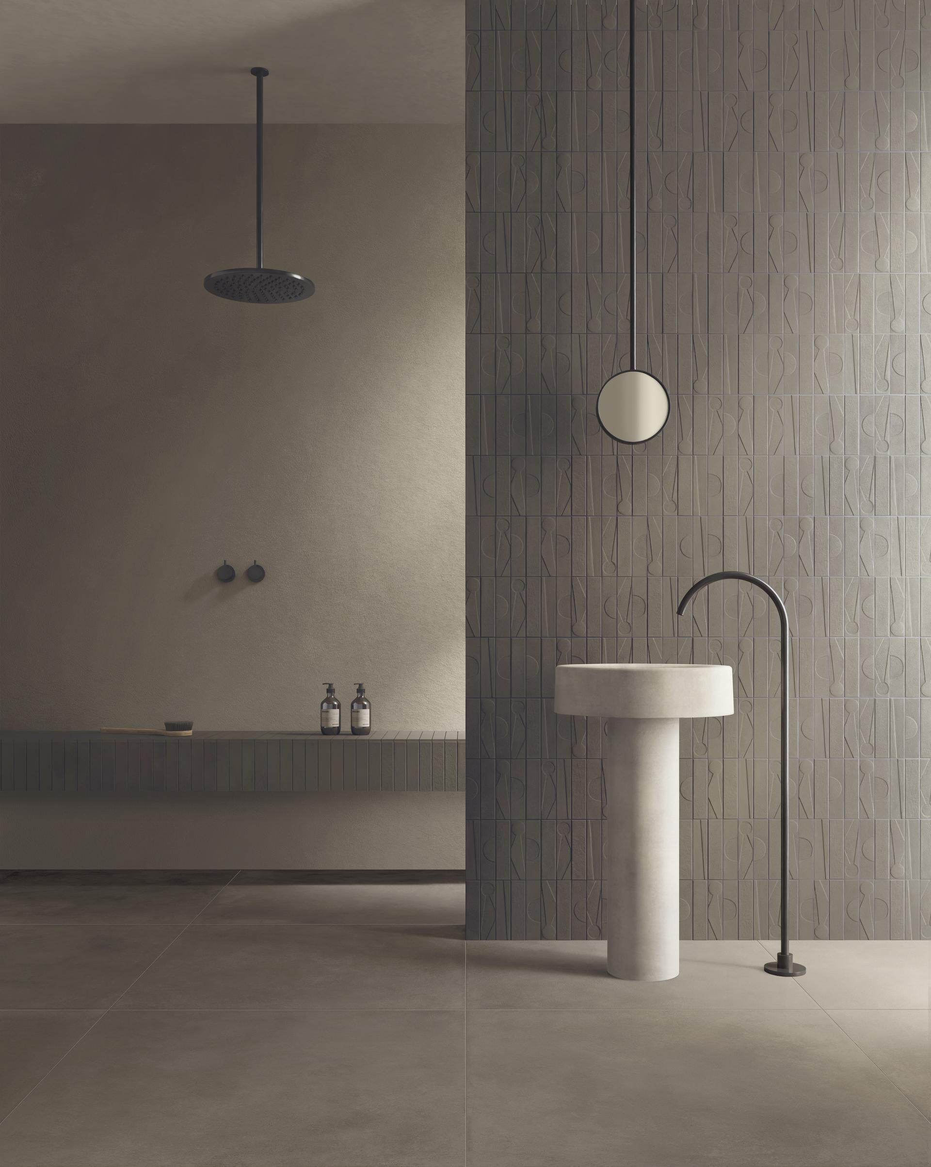 La ricerca si è concentrata sulla trasformazione in decoro bidimensionale di alcune forme scultoree caratteristiche e iconiche nell’alfabeto di Claudia Carpenito: il semicerchio non perfetto, la linea obliqua e un elemento in particolare ispirato alle antiche anse di vasi nella regione della Puglia orientale, la Messapia. È stato esattamente questo incontro di alfabeti e simboli l’ispirazione della collezione Koinè, in cui l’artista/designer Claudia Carpenito ha compiuto ancora una volta una sintesi del tutto personale di un antico linguaggio, riducendolo all’essenziale “da portare con se”.