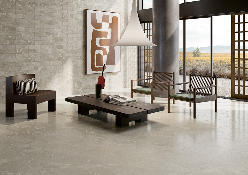 MEDICEA reinterpreta il marmo Breccia amato dai Medici nel XVI secolo, fondendo tradizione e innovazione in superfici ceramiche eleganti e contemporanee. In cinque tonalità calde (Avorio, Grigio, Beige, Greige, Argilla) e due finiture (Naturale e Levigato-matt), la collezione esalta matericità e luce. Venature tridimensionali, ottenute con un’innovativa tecnica, donano profondità e realismo, per un’estetica raffinata che unisce memoria storica e design attuale.