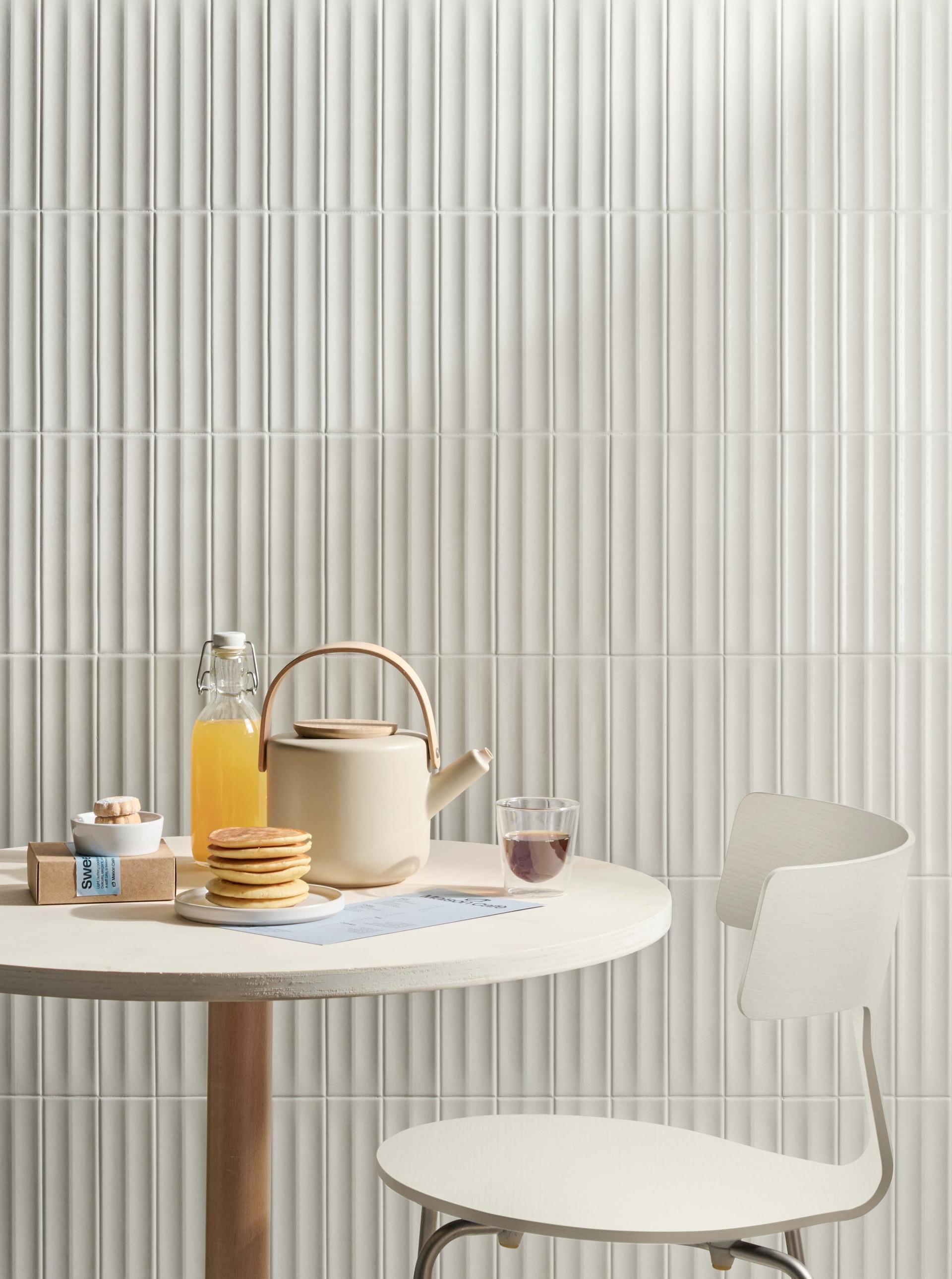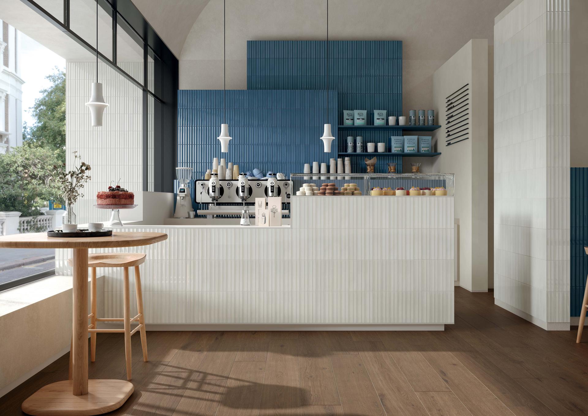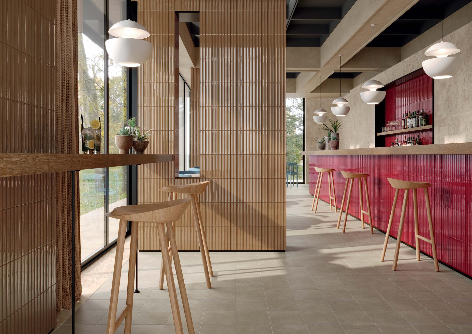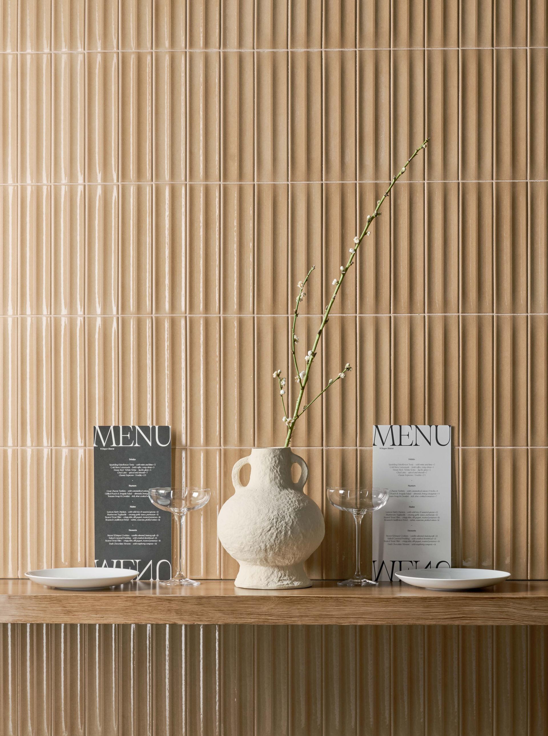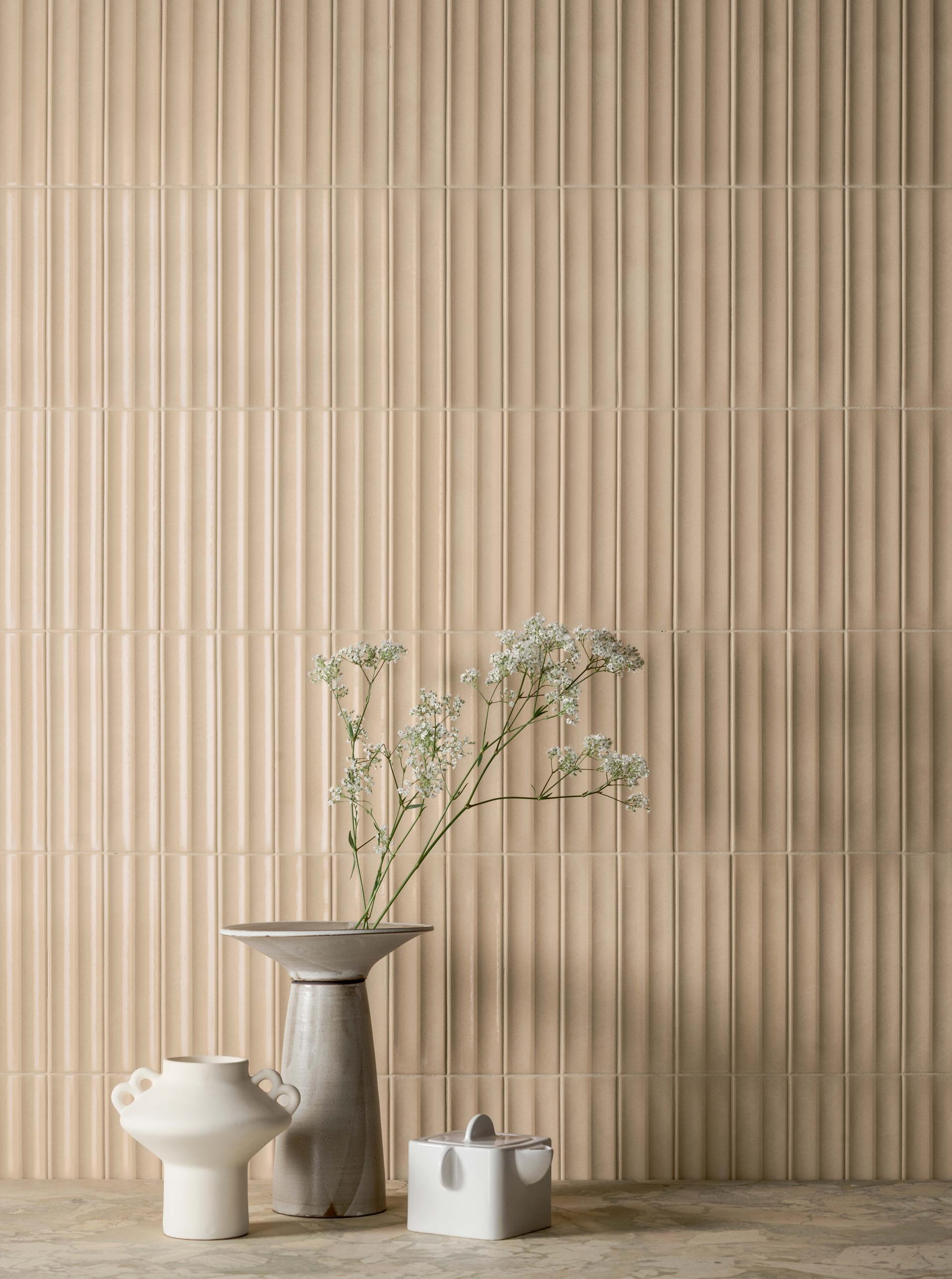 Miniature Rima di Marca Corona introduce un tocco tridimensionale alla raffinata collezione di rivestimenti in piccolo formato. Proposta nel formato 6×24 cm, Rima presenta una texture 3D originale con una doppia scanalatura: sezioni concave lucide si alternano a bordi opachi in rilievo, creando una superficie ritmica e tattile.