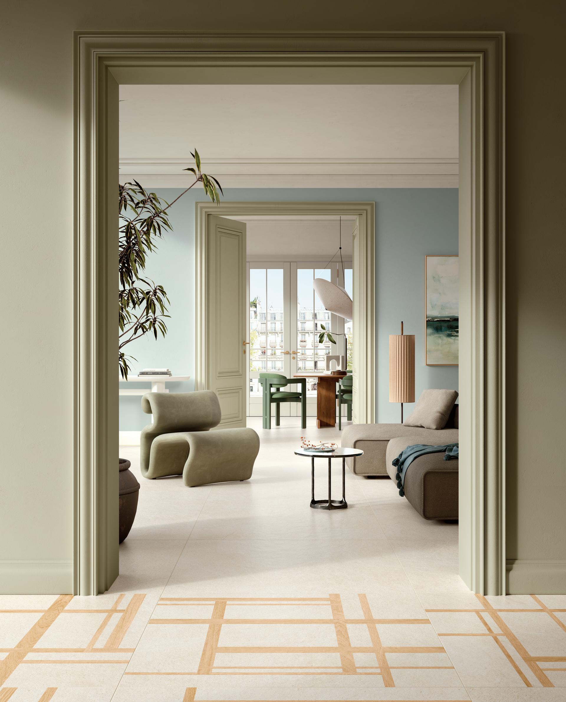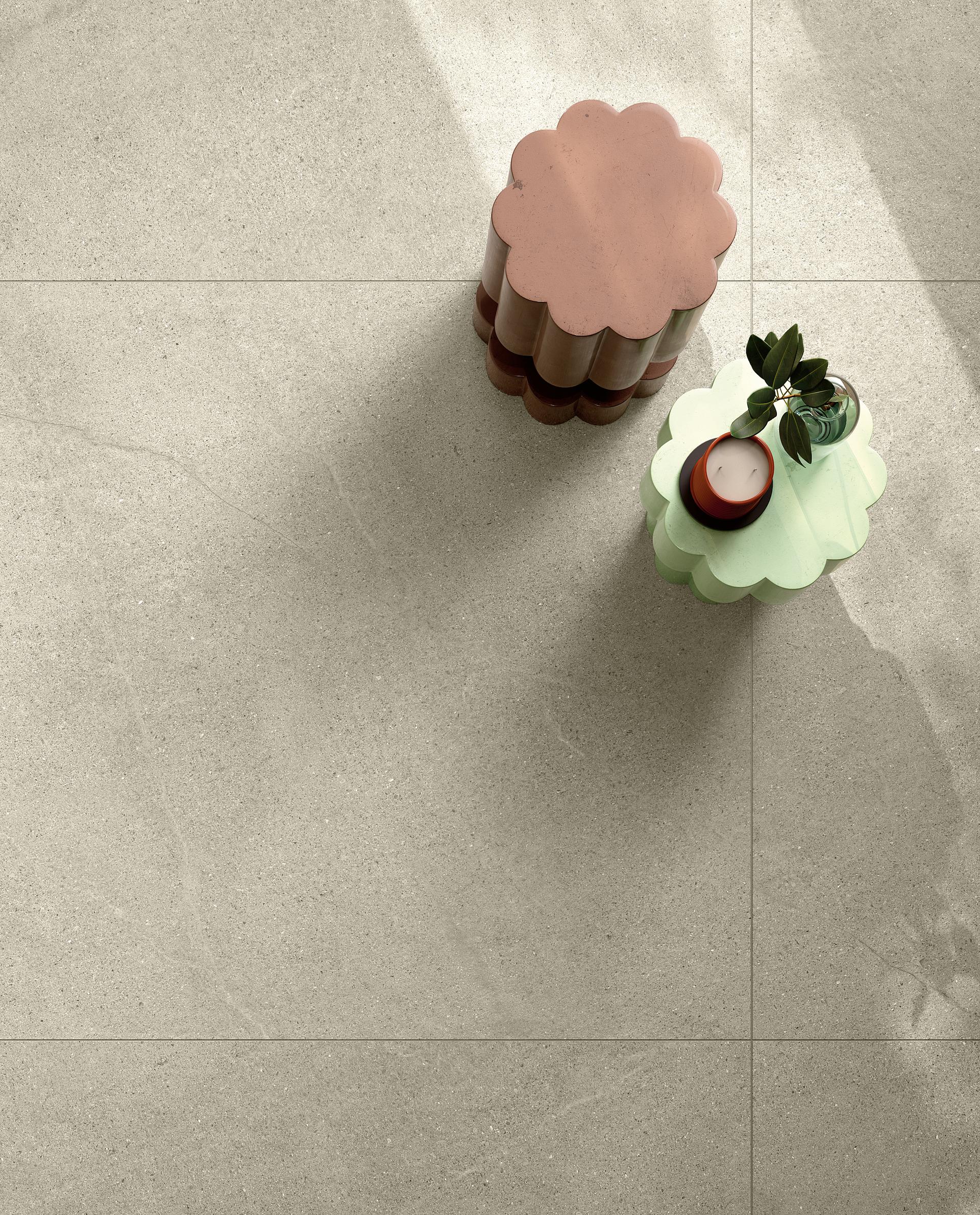 Sensoria prende vita dalla pietra “Bianco Siberia”. Questa collezione di pavimenti e rivestimenti in gres si distingue per una grafica tono su tono, arricchita da venature bianche e grigie che conferiscono profondità e raffinatezza. Le quattro colorazioni disponibili offrono una gamma di piastrelle ceramiche e di atmosfere diverse. Il decoro Combination unisce pietra e legno Rovere Naturale di Native. Inoltre, la struttura tridimensionale Touch, con le sue righe parallele, dona sulla superficie ceramica un movimento cannettato elegante. Disponibile in lastra 120×278 cm.