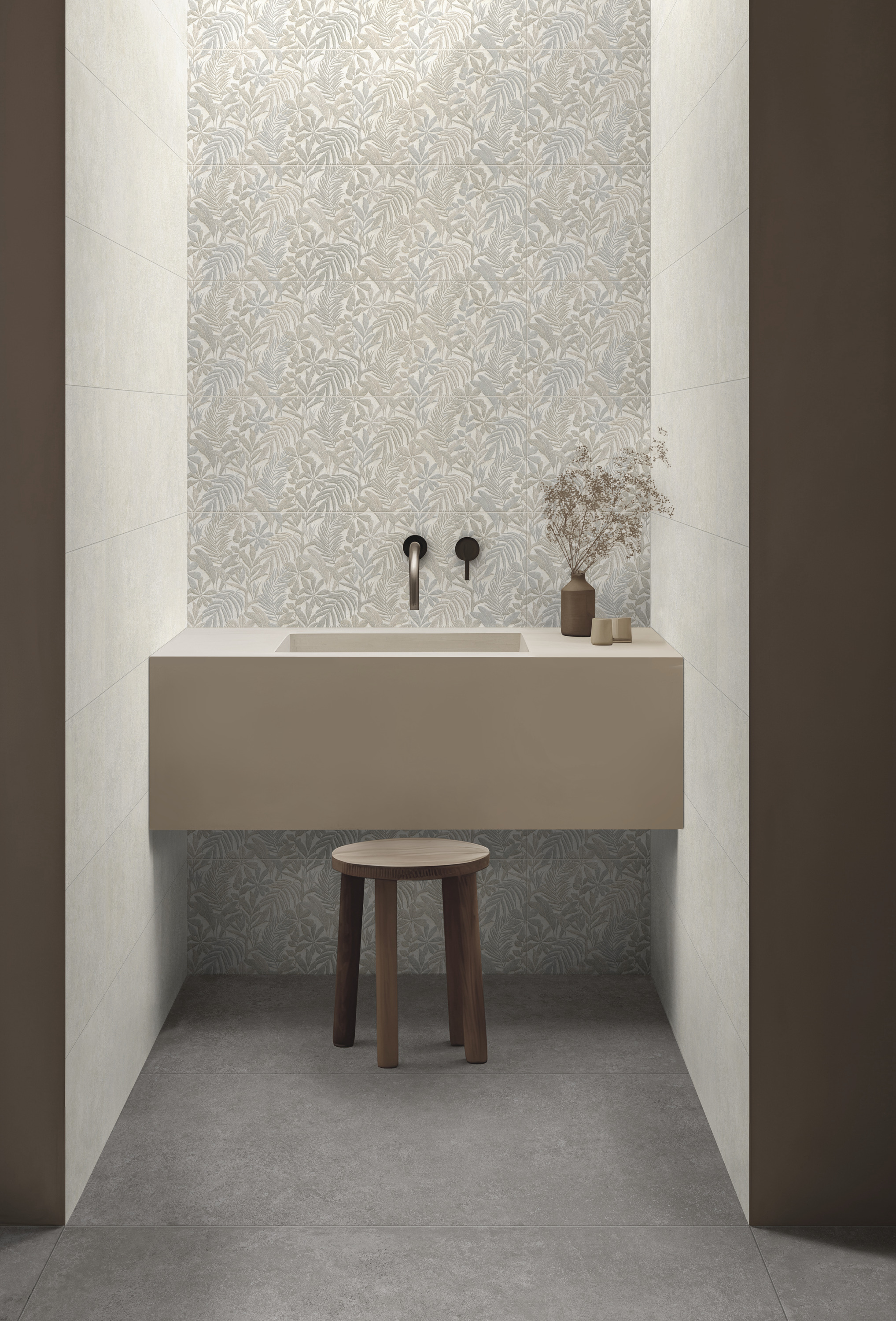 La nuova collezione Tiempo trae ispirazione dalla pietra francese Montpellier, nota per la sua ricchezza e stonalizzazione, reinterpretata con un tocco rustico e omogeneo in cinque colori e cinque dimensioni, dalla superficie morbida e piacevole al tatto. Il rivestimento in pasta bianca Tiempo Wall, esalta la profondità e la ricchezza dei dettagli con la struttura tridimensionale Saw e il decoro Forest con tecnologia Touch.