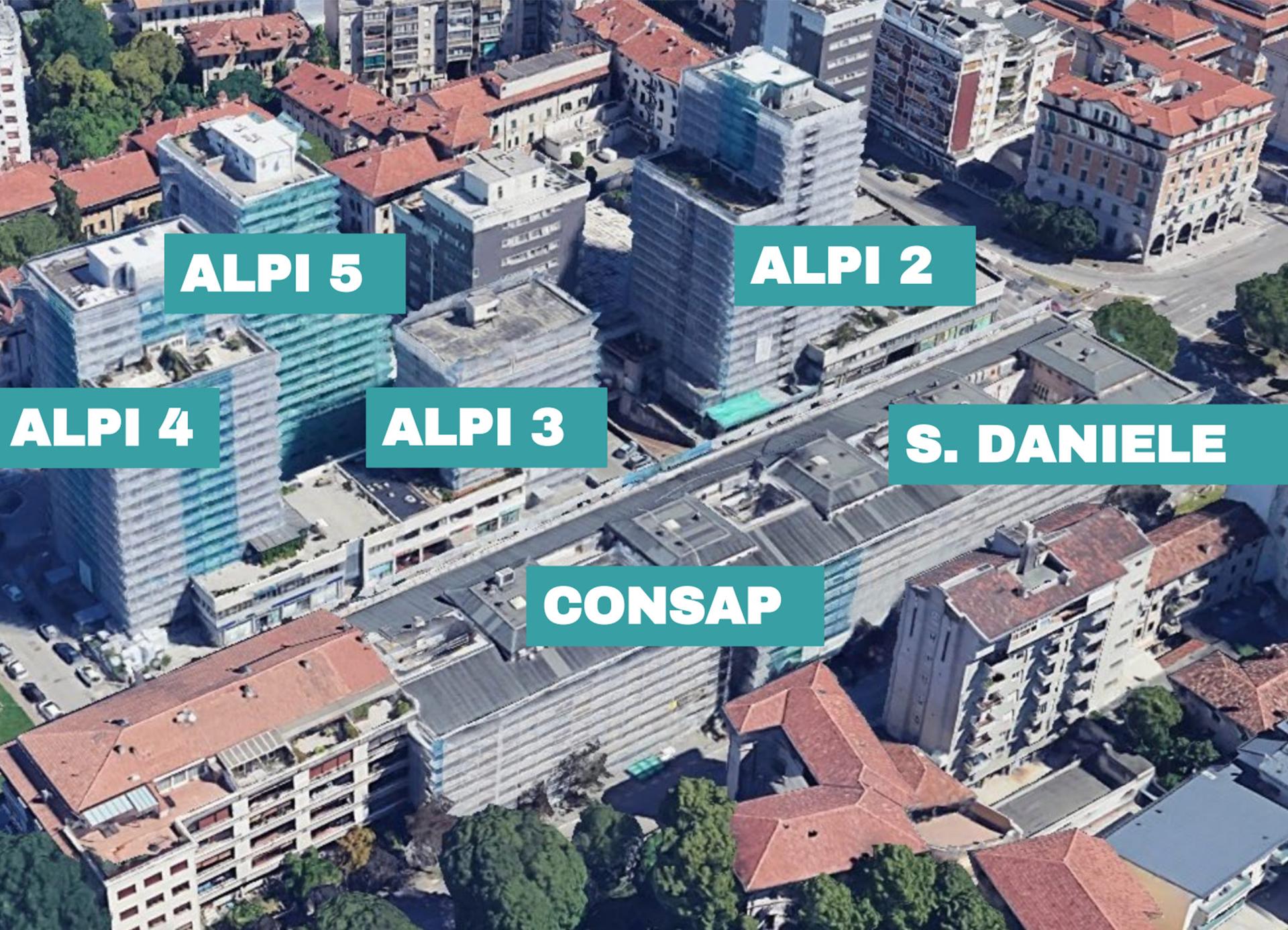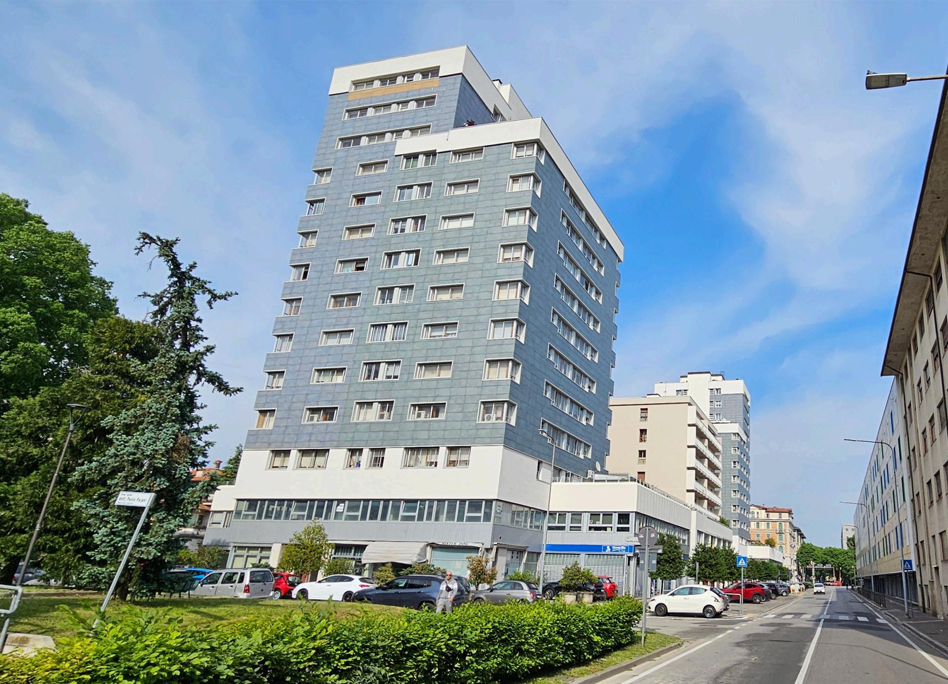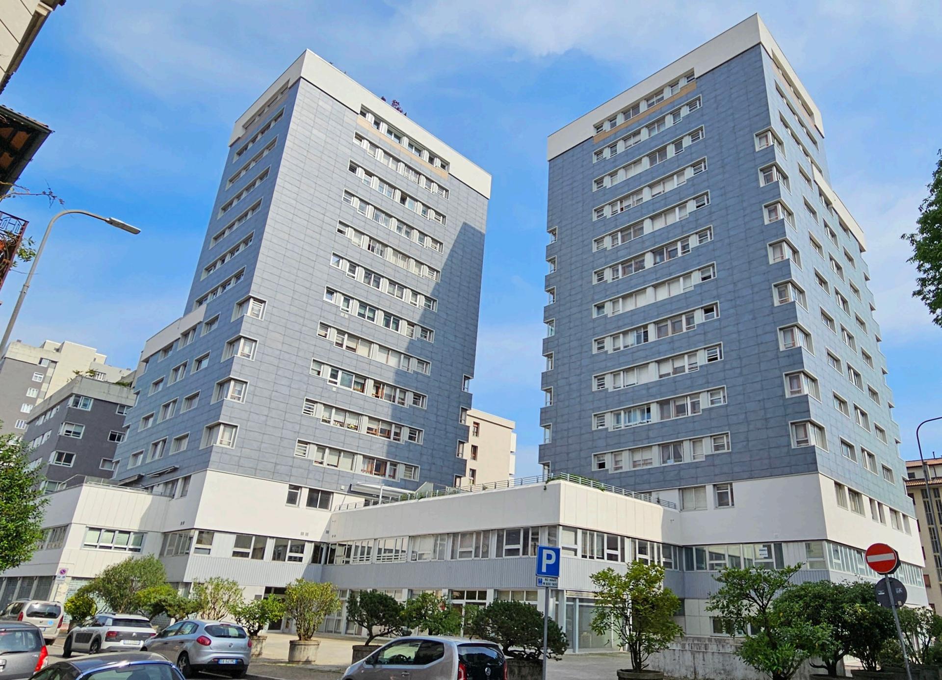 Questa scelta strategica, oltre a rivoluzionare l’estetica, ha permesso di dimezzare il fabbisogno energetico degli stabili, garantendo un salto di classe energetica da 2 a 3 e un miglior controllo del surriscaldamento estivo. La sfida ha richiesto un notevole sforzo di coordinamento, unendo cinque amministratori condominiali per la gestione dei condomini Alpi 2, 3, 4, 5, Consap e San Daniele. L’unico a non aderire è stato il condominio Alpi 1, la torre che un tempo ospitava il cinema Capitol. Guidato dall’architetto Gianluca Rosso di Open Building srl sb, il progetto è stato realizzato dall’impresa Rizzani de Eccher SPA di Pozzuolo del Friuli (UD). La protagonista materica della trasformazione è stata la ceramica in gres porcellanato, scelta per la sua robustezza, durabilità e inalterabilità cromatica.