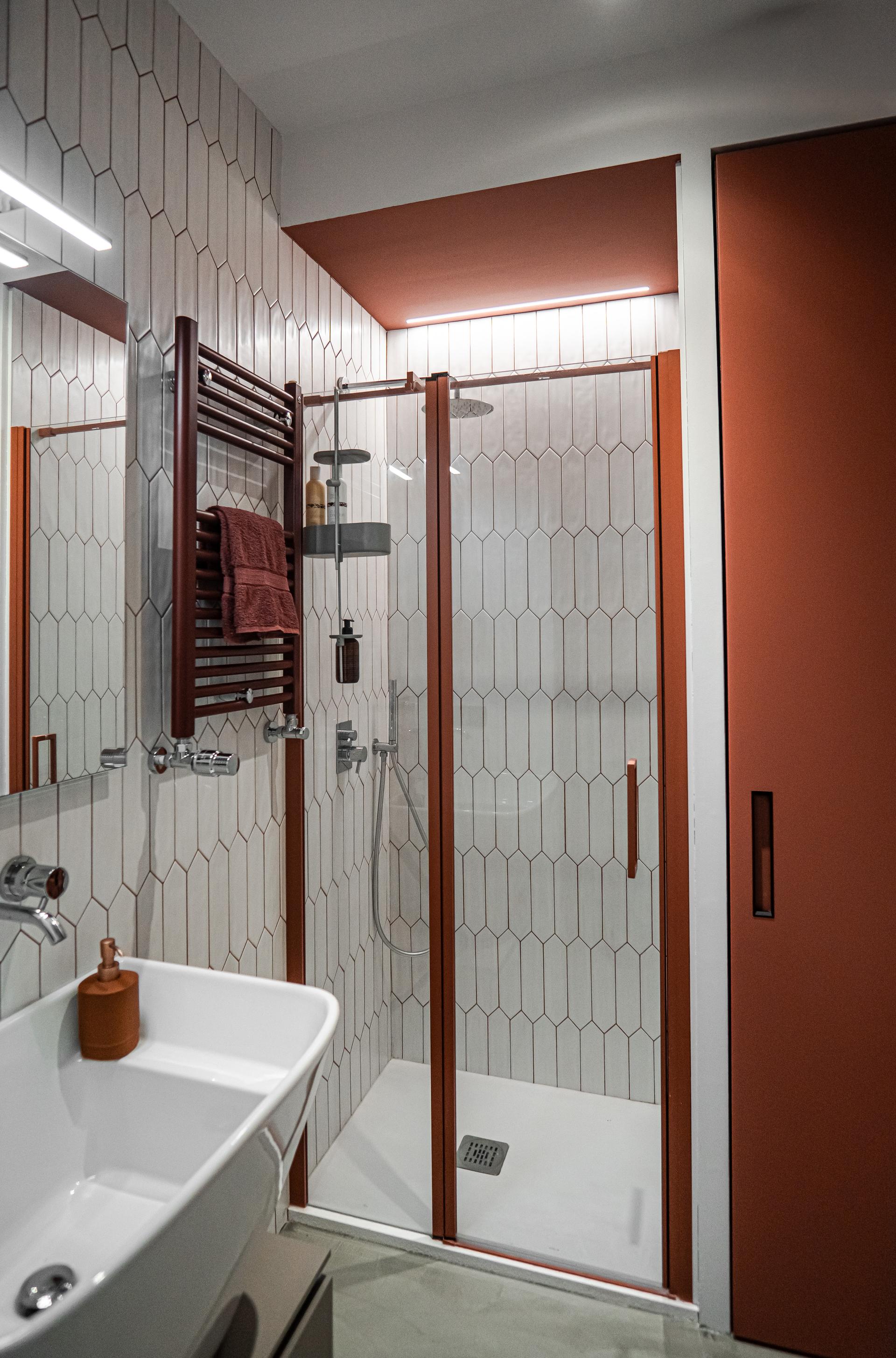 Una stanza da bagno parte di un appartamento a Torino, forse piccola, ma da valorizzare sia nella distribuzione degli spazi che nella scelta delle finiture: l’architetta Laura Cugnidoro ha risposto a queste esigenze con un progetto creativo, colorato e funzionale. Ne parla in prima persona, raccontando qual è il pensiero che ha guidato l’intervento: “il progetto segue una filosofia minimalista e funzionale, con un chiaro focus sull’essenzialità delle forme e sull’armonia cromatica. L’intervento è orientato a valorizzare gli spazi contenuti, come si evince dalla doccia perfettamente integrata in una nicchia affiancata alla colonna per la lavanderia. La scelta di colori decisi, come il terracotta, si accosta armoniosamente alla neutralità del bianco, creando un ambiente caldo ma sofisticato. Artistico e in linea con il progetto globale della casa”.