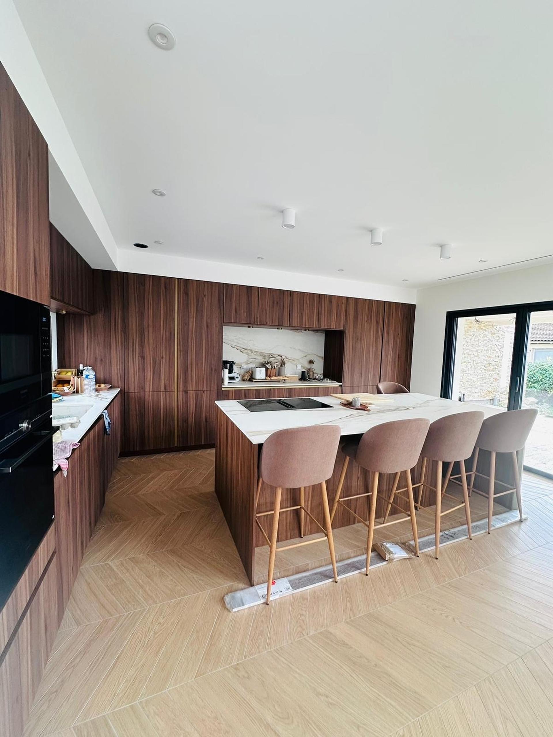 Una residenza privata a Montpellier è stata oggetto di un intervento d’interni mirato a valorizzare gli spazi con un linguaggio sobrio e contemporaneo. L’obiettivo era creare ambienti accoglienti e armoniosi, capaci di trasmettere calore senza rinunciare alla pulizia delle linee e alla qualità dei materiali. La pavimentazione ha giocato un ruolo determinante: posata su una superficie di 160 mq, si integra con coerenza nelle diverse aree della casa – dalla zona giorno alla cucina fino al piano superiore – rafforzando la continuità visiva e la fluidità del progetto. Il legno, presente anche in altri dettagli architettonici, contribuisce a definire l’identità stilistica complessiva, con un equilibrio tra naturalezza e rigore formale.
