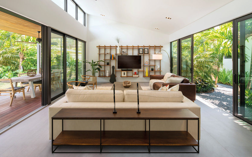 Porta la firma di DEN Architecture, studio di progettazione e interior design con sede a Miami con una spiccata vocazione verso un’architettura sostenibile, a bassa impronta ambientale, energeticamente efficiente e ampiamente basata sull’utilizzo di materiali naturali e locali. E c’è un po’ di tutto questo in Portico House, una residenza privata unifamiliare che compensa i soli 200 metri quadrati di superficie – una dimensione nettamente più contenuta rispetto alla media delle classiche mansion dei sobborghi statunitensi – con una straordinaria proiezione verso l’esterno, fatta di ampi portici coperti, corti interne e scenografiche aree verdi. Una scelta che non solo dilata gli spazi abitativi ma soprattutto sfuma il tradizionale confine indoor/outdoor, consentendo di godere del favorevole clima della Florida e stabilendo al tempo stesso un’intima connessione con la natura circostante, che occupa rigogliosa ogni angolo dello spazio non costruito di questa suggestiva location. Un “design permeabile”, come lo definisce il capoprogetto German Brun, grazie al quale il progetto si è aggiudicato una menzione d’onore nella categoria Residential Single-Family della Tile Competition 2022, il concorso di architettura promosso da Ceramics of Italy per il mercato nordamericano.