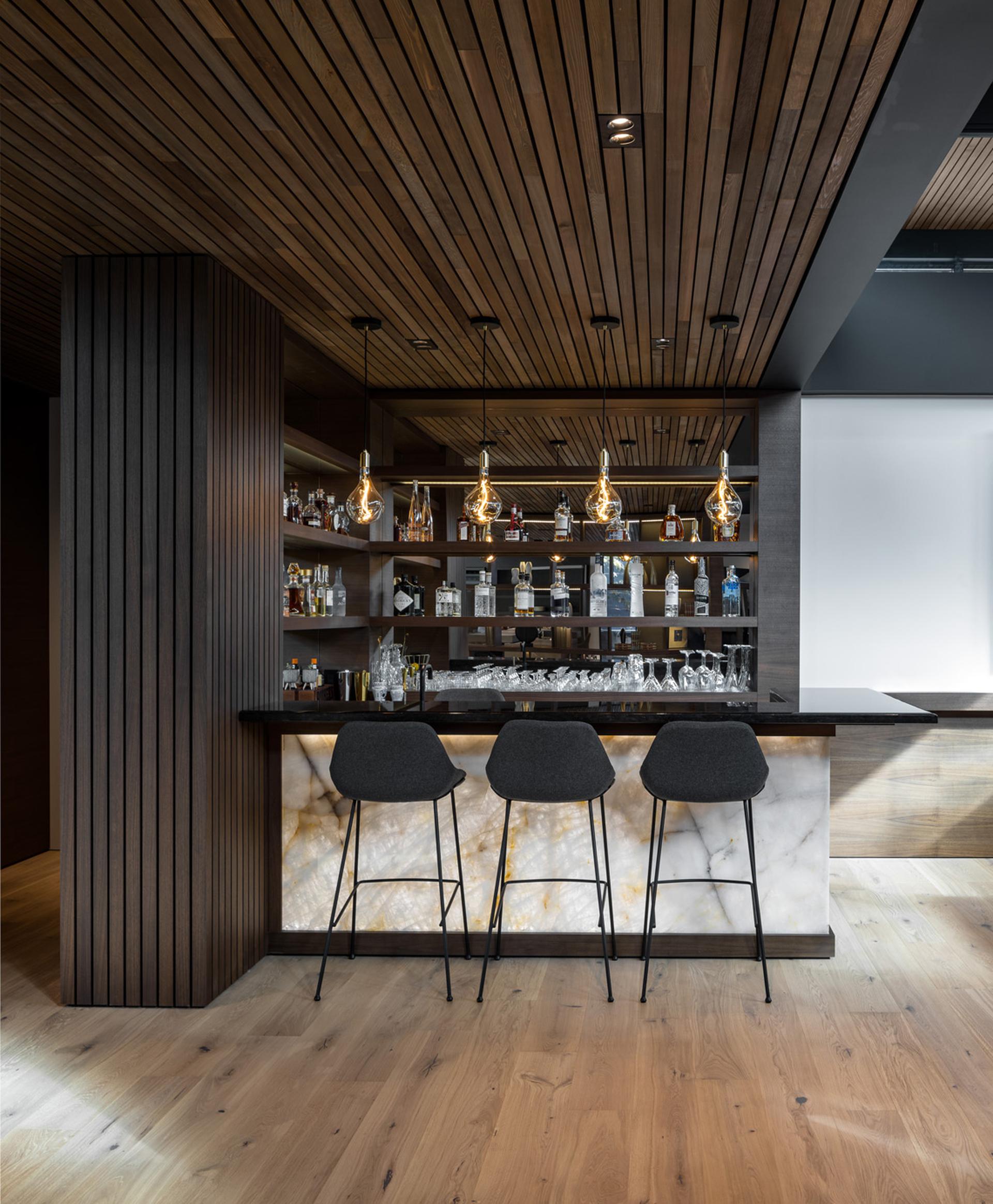 Il giusto equilibrio di scelte materiche fra di loro differenti è stata la soluzione vincente per raggiungere questo obiettivo. Al legno, usato per rivestire pavimenti e boiserie, si è affiancato il gres porcellanato: l’originalità delle soluzioni proposte sia per il design sia per le cromie è valsa al team canadese il ‘Tile Competition Award 2025’, che riconosce le migliori realizzazioni in Europa e in Nord America che usano ceramiche Made in Italy.