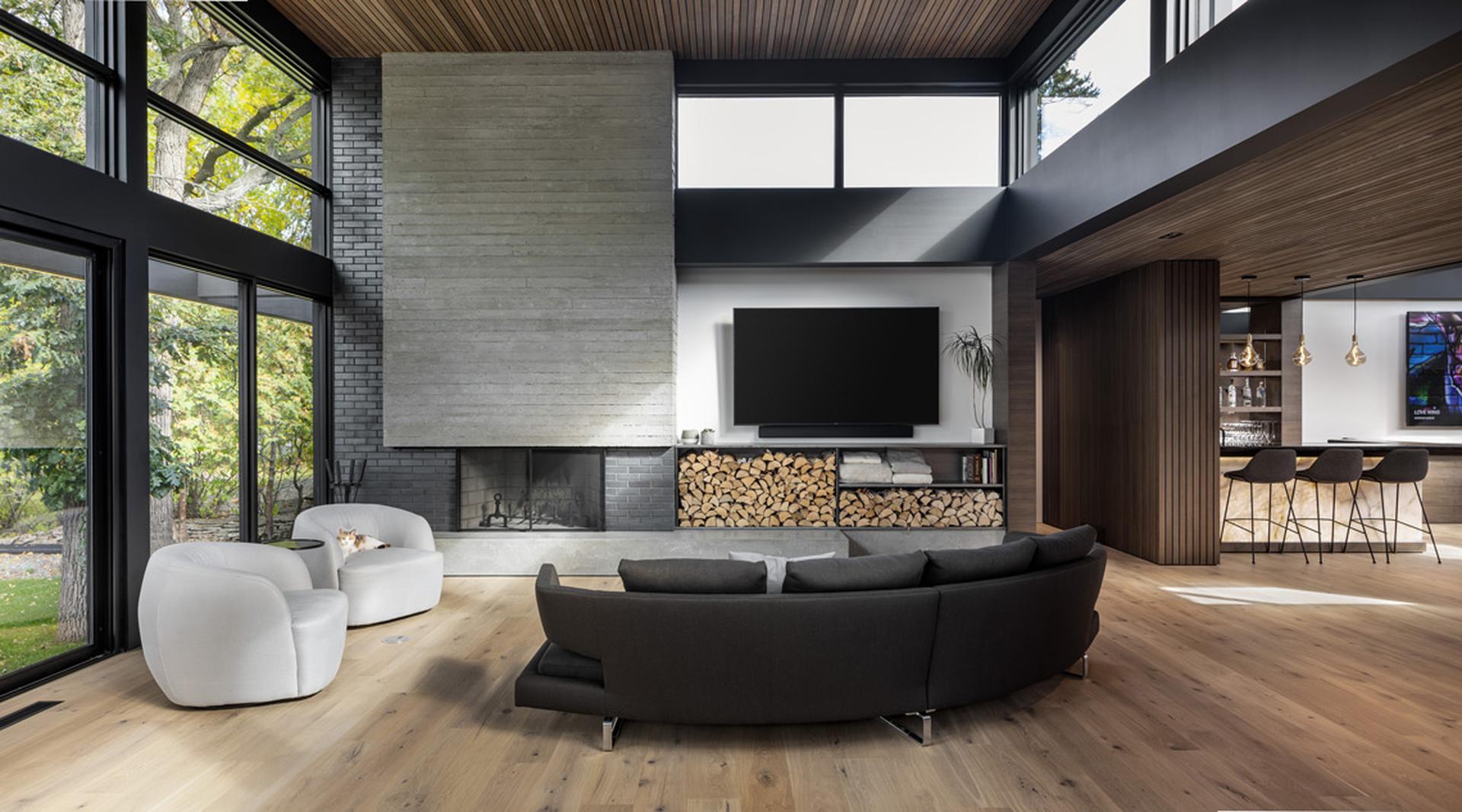 Esemplare da questo punto di vista la ‘Living Lounge’, una villa adagiata in un’area boschiva non lontano dal centro di Winnipeg, lungo il corso del fiume Assiniboine.