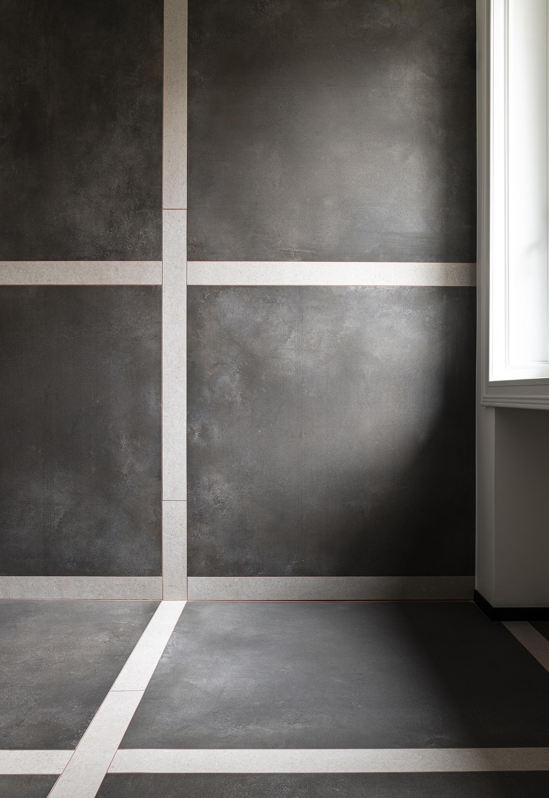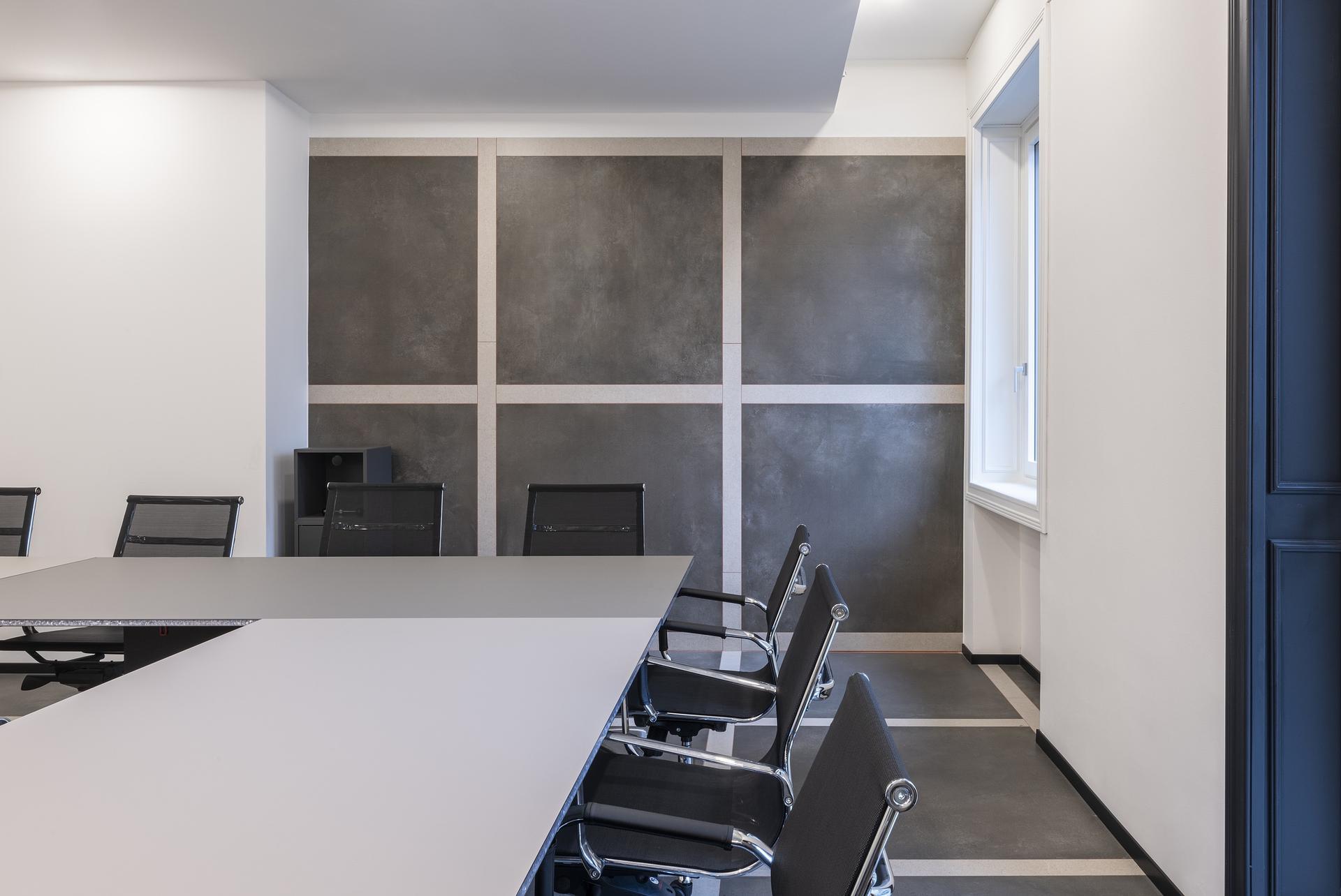 Gli uffici con sede a Milano si presentano oggi come ambienti sobri, dove a definire l’interior design sono anche le scelte cromatiche e materiche riferite ai rivestimenti. In questo ambito, a distinguersi è il gres ceramico, scelto per ampie porzioni dello spazio grazie anche ad alcune sue caratteristiche intrinseche, come sottolinea Vittorio Bifulco Troubetzkoy: “in primo luogo, le proprietà come resistenza e durata lo rendono adatto all’uso in ambienti ad alto traffico come gli uffici finanziari. Inoltre, la varietà di finiture e colori disponibili ci ha permesso di creare composizioni personalizzate che si adattano al design complessivo degli spazi. Infine, l’aspetto estetico del gres ceramico ha aggiunto un tocco di eleganza e modernità agli uffici, contribuendo a creare un ambiente lavorativo confortevole e accogliente”.