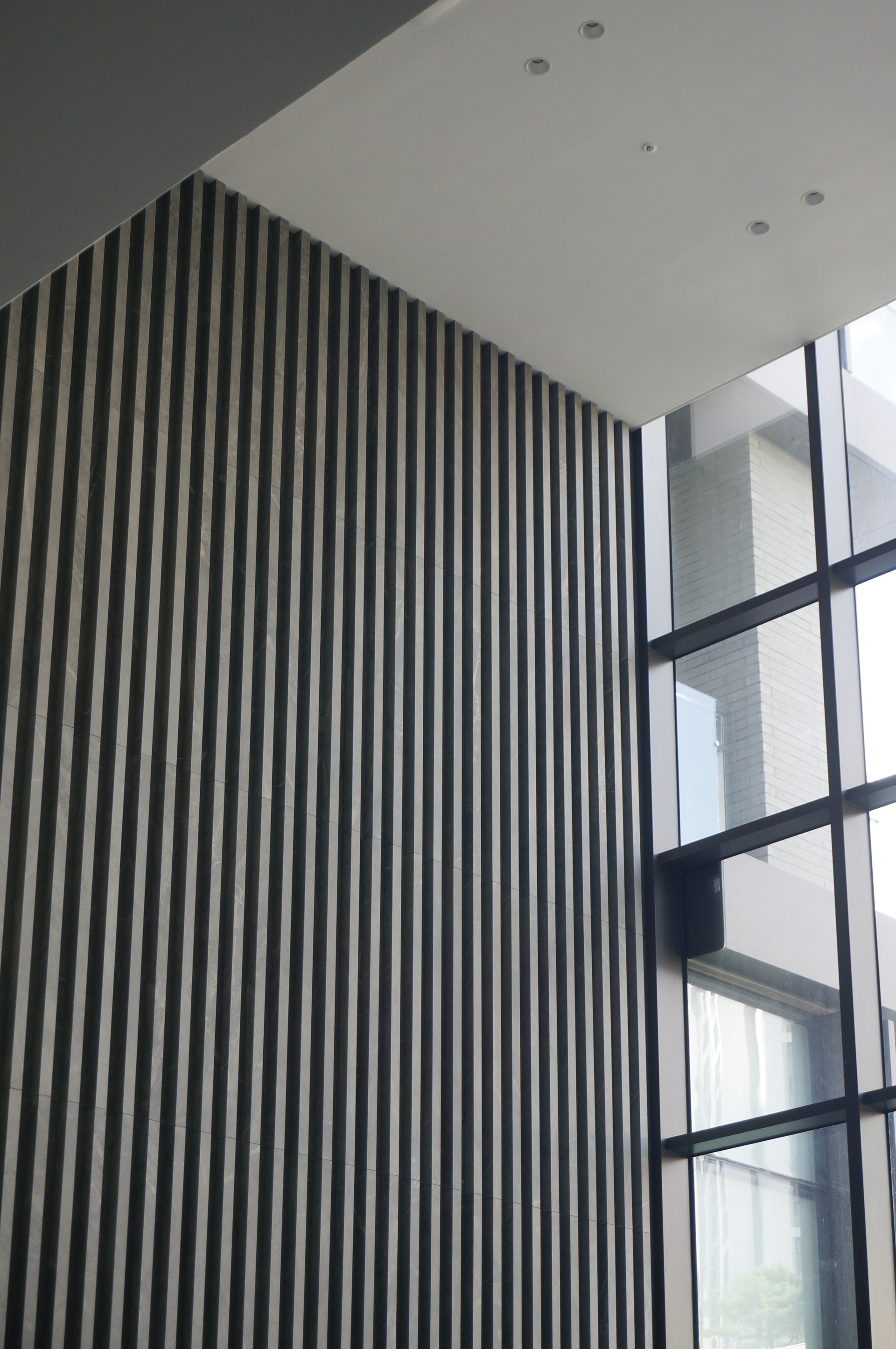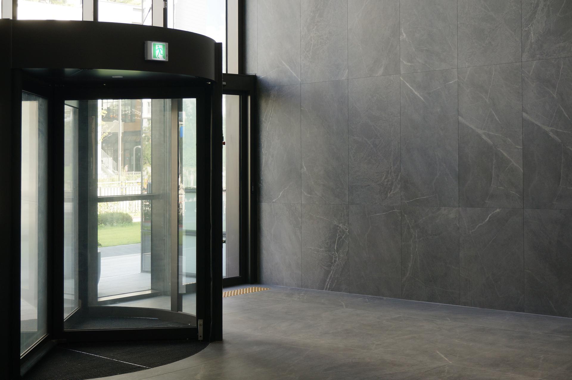 In questo edificio è stata scelta la posa di lastre di 75×150 centimetri, nello spessore di 9 millimetri.