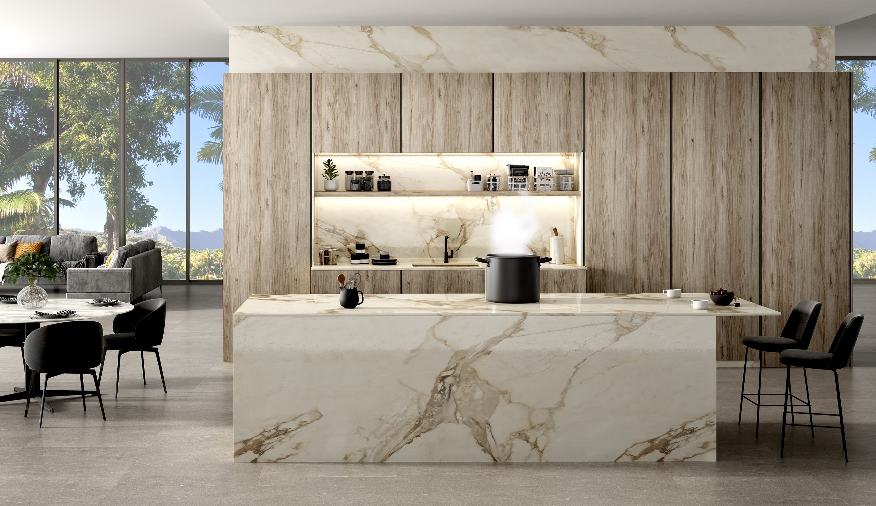 Скрытая кухонная плита Cooking Surface Prime в сочетании с крупноформатными плитами из керамогранита выходит на международный рынок благодаря брендам Abkstone и Materia. ABK Group – специалист в области крупноформатных плит с высокими техническими характеристиками – с целью ускорить собственную экспансию в секторе мебели действительно купила 49% акций испанской Arbe Stolanic, создав таким образом союз, объединяющий дизайн итальянского продукта и испанскую интуицию, получившую премию за лучшую отраслевую инновацию на фестивале кухни SADECC 2019 в Париже.
