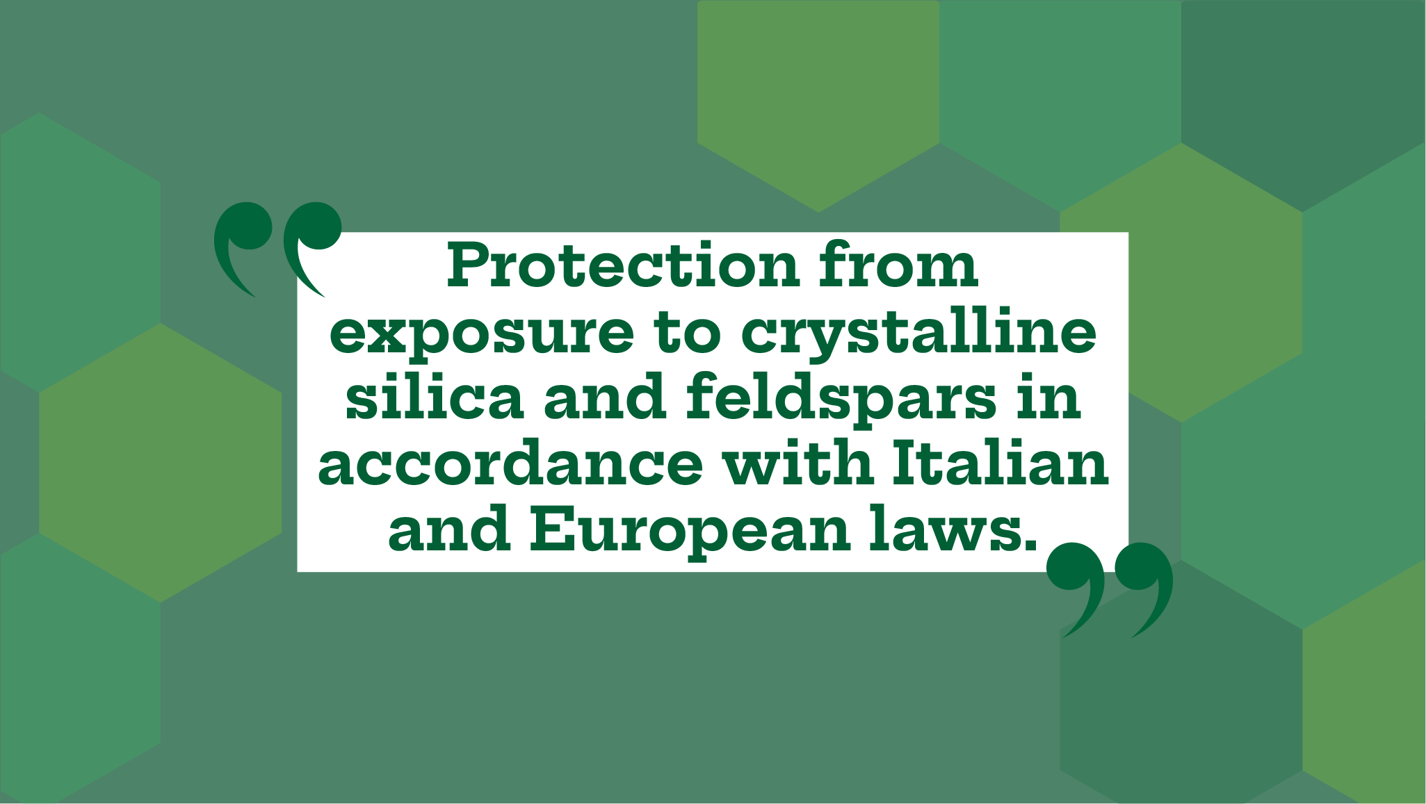 Протокол, подписанный в 2021 году между Ассоциацией производителей керамики Confindustria Ceramica, Администрацией области Эмилия-Романья, Ассоциацией производителей оборудования для керамической промышленности Acimac и профсоюзными организациями в результате принятия Постановления 2017/2398, является важным инструментом, гарантирующим для итальянской керамической промышленности однозначное толкование действующих нормативов и сбалансированность между решениями по охране здоровья и безопасности для рабочих и конкурентоспособностью предприятия.