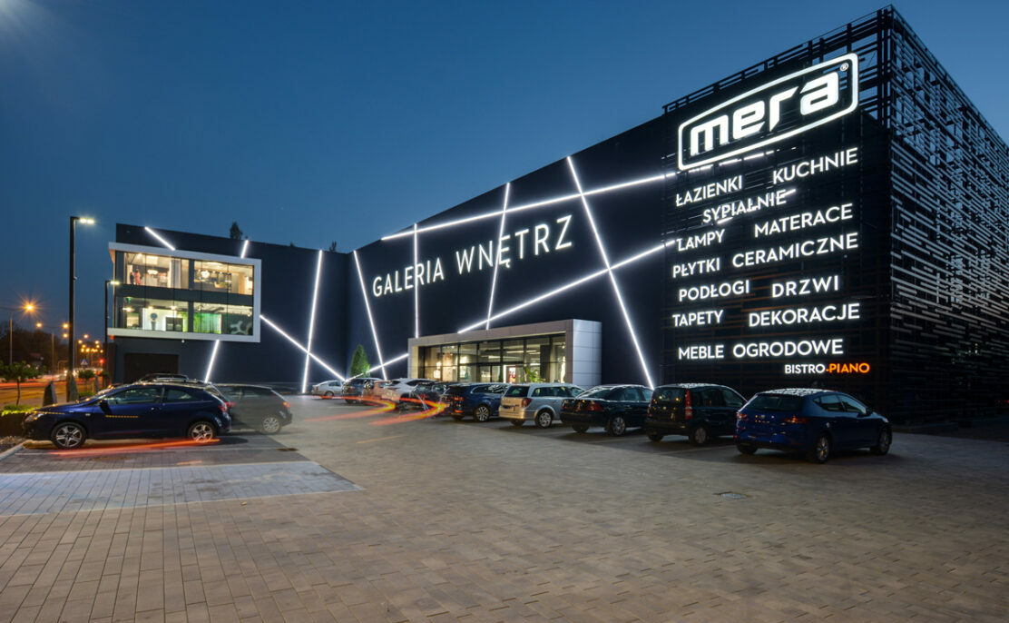 Компания Mera располагает пятью выставочными залами в ключевых городах Силезии. Основной салон находится в городе Тыхы, там же где штаб-квартира и центр Mera Garden, специализирующийся на садовой архитектуре. Кроме того, в городе Бельско-Бяла находится выставочный зал площадью более 4000 кв. м, а в городе Катовице – новейший выставочный зал площадью более 1000 кв. м. Кроме того, компания управляет аутлетом в Миколуве. Салоны Mera тщательно спроектированы и организованы таким образом, чтобы обеспечить высокий уровень комфорта для сотрудников. Mera – это место для всех, кто ищет качественную продукцию, соответствующую любым потребностям и предпочтениям.