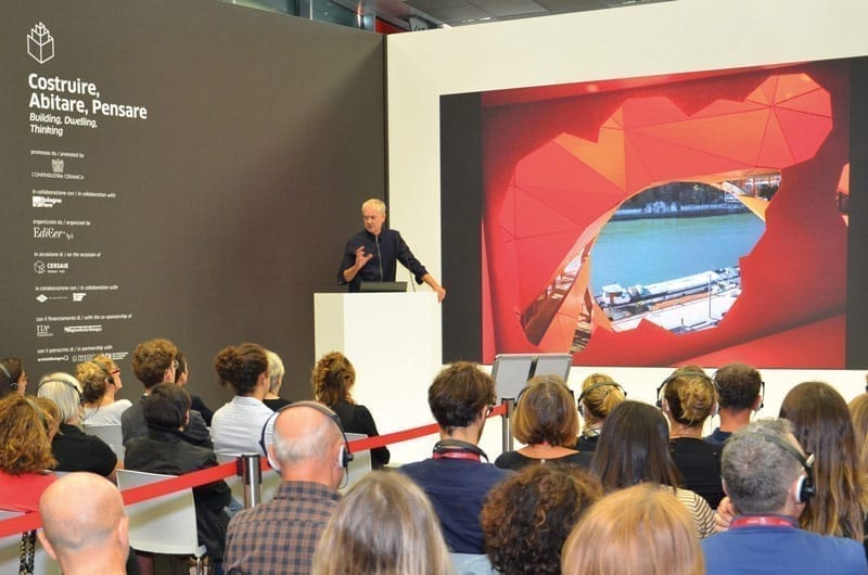 Целиком и полностью была посвящена экологической теме и отношению архитектуры и ландшафта двойная конференция, на которой выступили аргентинский архитектор Эмилио Амбаш и архитектор из Милана Аттилио Стокки. Амбаш представил на Cersaie конференцию под названием «Зеленое пророчество». Эмилио Амбаш, чьи работы уже в семидесятые годы затрагивали темы устойчивого развития и тогда казались чистой утопией, начал с концепции Природы сегодня: «Мы должны создать вторую Природу, которая будет сотворена руками человека, и она будет неразрывно связана с Природой, данной человеку. Труд архитектора – это труд примирения. Вот почему я говорю о том, что «Зеленое превыше серого» и я создавал здания, которые могли бы вернуть обществу как можно больше зелени, иногда полностью возвращая использованный для строительства участок земли. Архитектурное сооружение должно обращаться к сердцу, и мы должны поменять представление о том, что города существуют для зданий, а периферии для парков». Сразу после него выступил молодой Аттилио Стокки со своей поэтической концепцией проектирования под названием «Нарождающаяся». Аттилио Стокки ставит в центр своей проектировочной деятельности экспериментальный поиск в трактовке природы, которая становится основополагающим элементом в формировании пространства. Среди проиллюстрированных проектов была инсталляция Cuorebosco (2011) – реконструкция кельтского леса, первого исторического центра Милана – спроектированная из металлических стволов, веток в тумане и наполненная птичьим пением, в завершение два последних проекта с участием и по заказу Комитета по охране культуры в Милане: Холм ГЕРМЕСА (2018) при дворце Читтерио и новый важный проект в процессе реализации PAN (2019) – парк Amphitheatrum Naturae -, в печати уже прозванный «Зеленый Колизей».