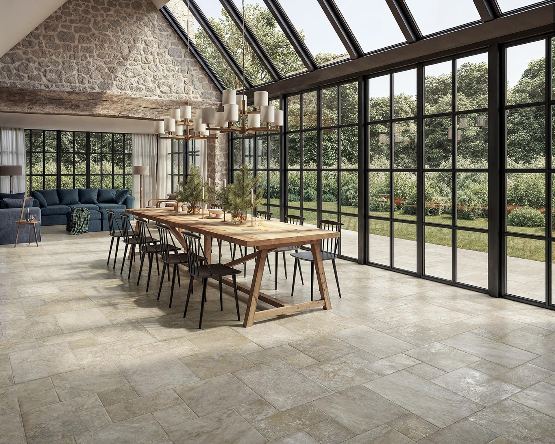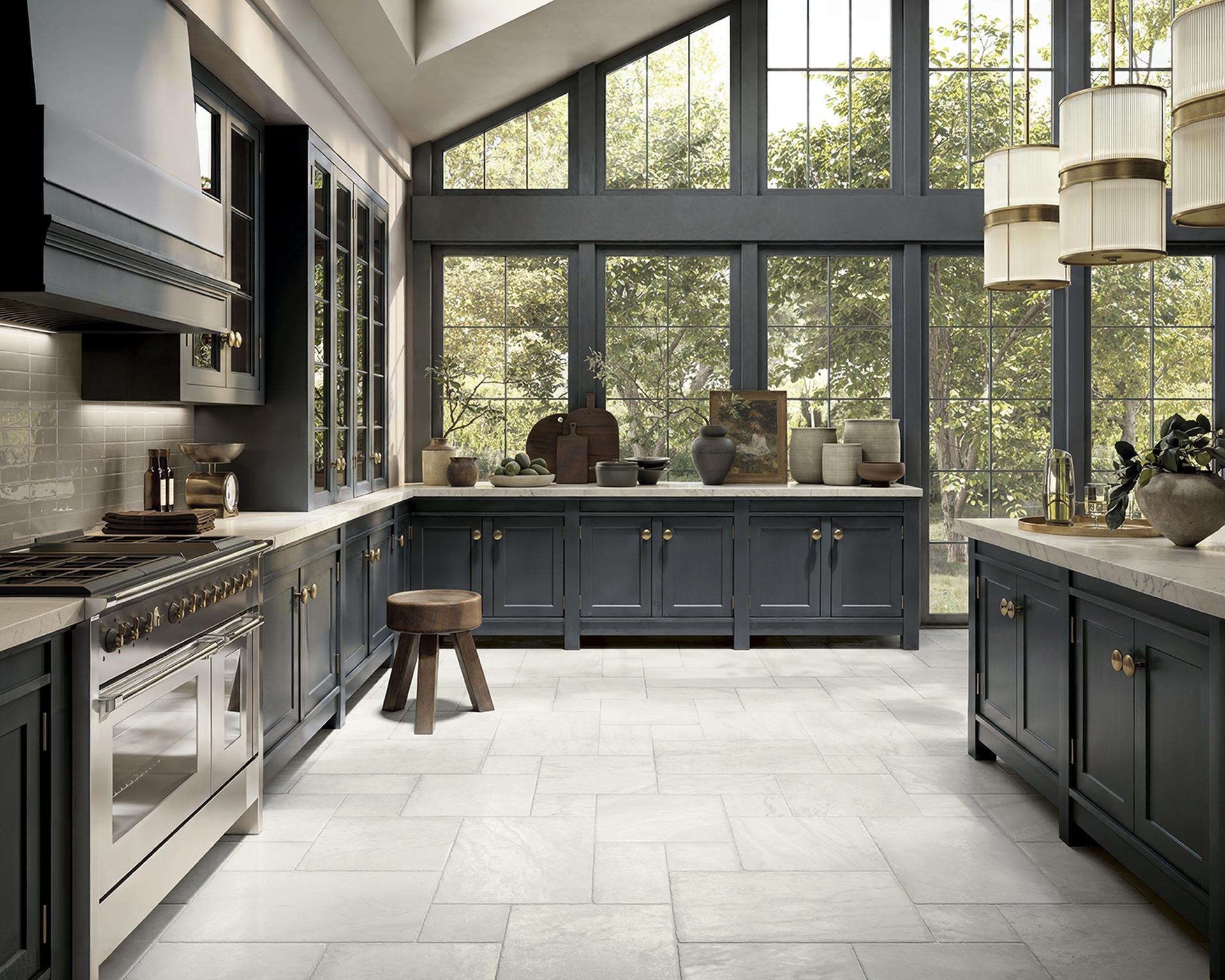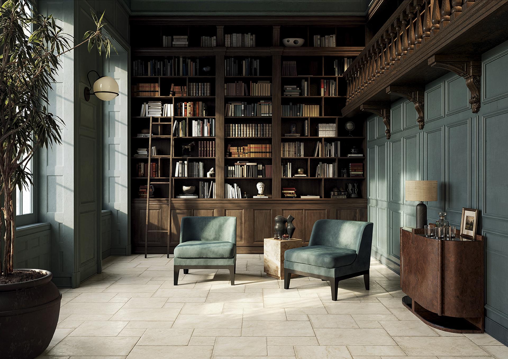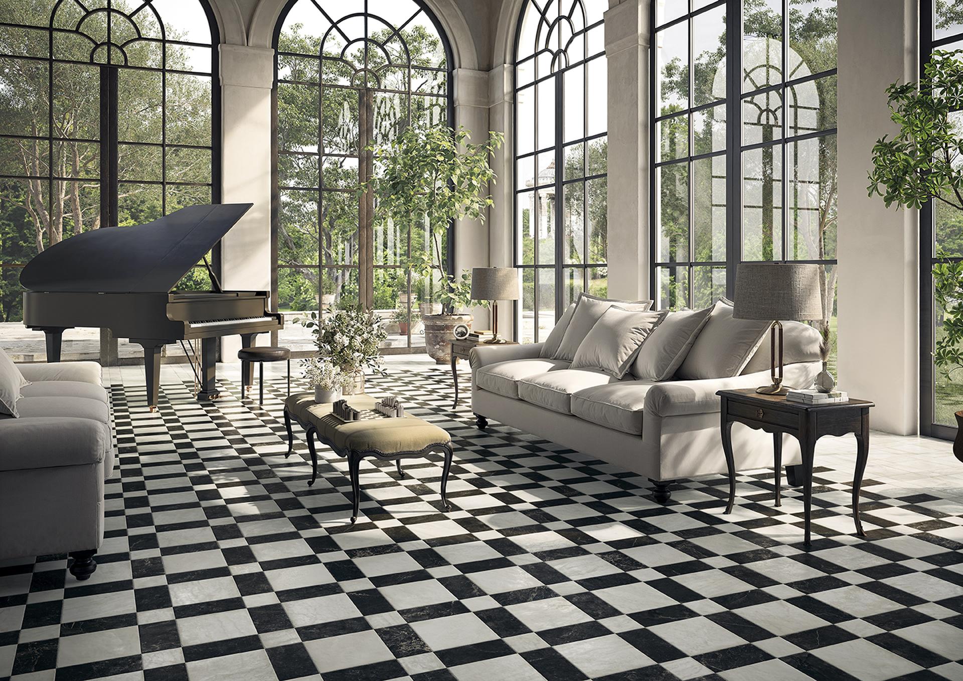 Die Kollektion Marmi Imperiali Versailles, Ausdruck der zeitlosen Eleganz der prächtigen Marmore, die in römischen Palästen und adeligen Villen verwendet wurden, entwickelt ihre gestalterische Sprache weiter und erweitert die kompositorischen Möglichkeiten der Oberflächen. Ein System aus vier modularen Formaten (mit antikisierten Kanten) führt neue Geometrien und Verlegerhythmen ein und interpretiert den englischen Country-Stil in zeitgemäßer Form neu.