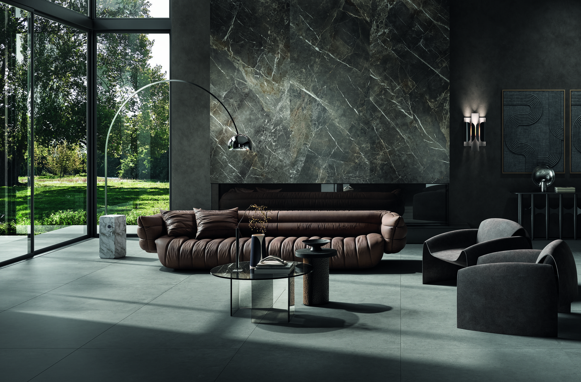 Maxxi offers a new take on the concrete aesthetic, combining industrial character with elegant minimalism. Its unique extra-matt surface absorbs light and comes in three classic concrete-inspired shades: Silver Grey, Grey and Dark Grey. It is ideal for use on its own or as a neutral backdrop to more distinctive surfaces.