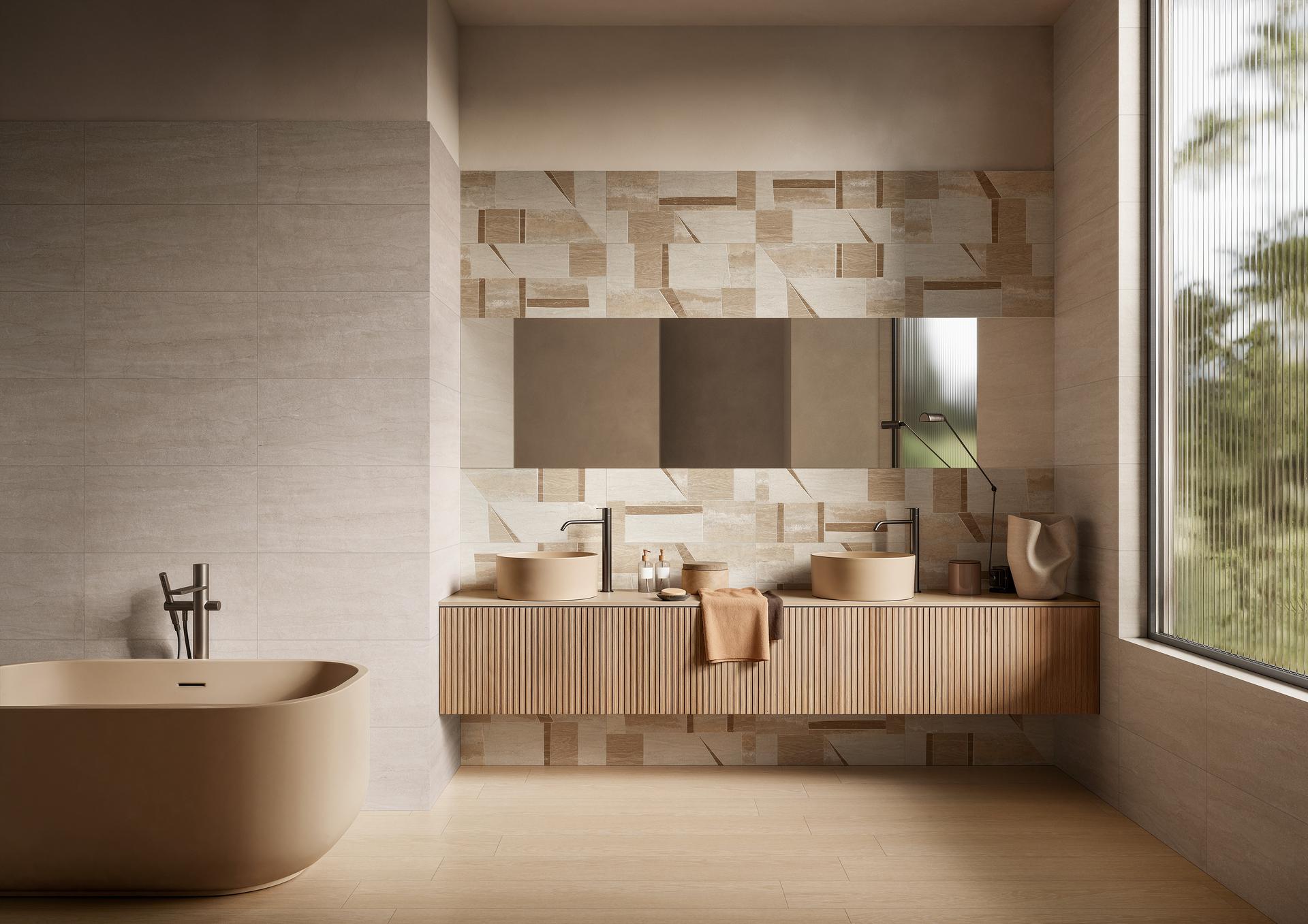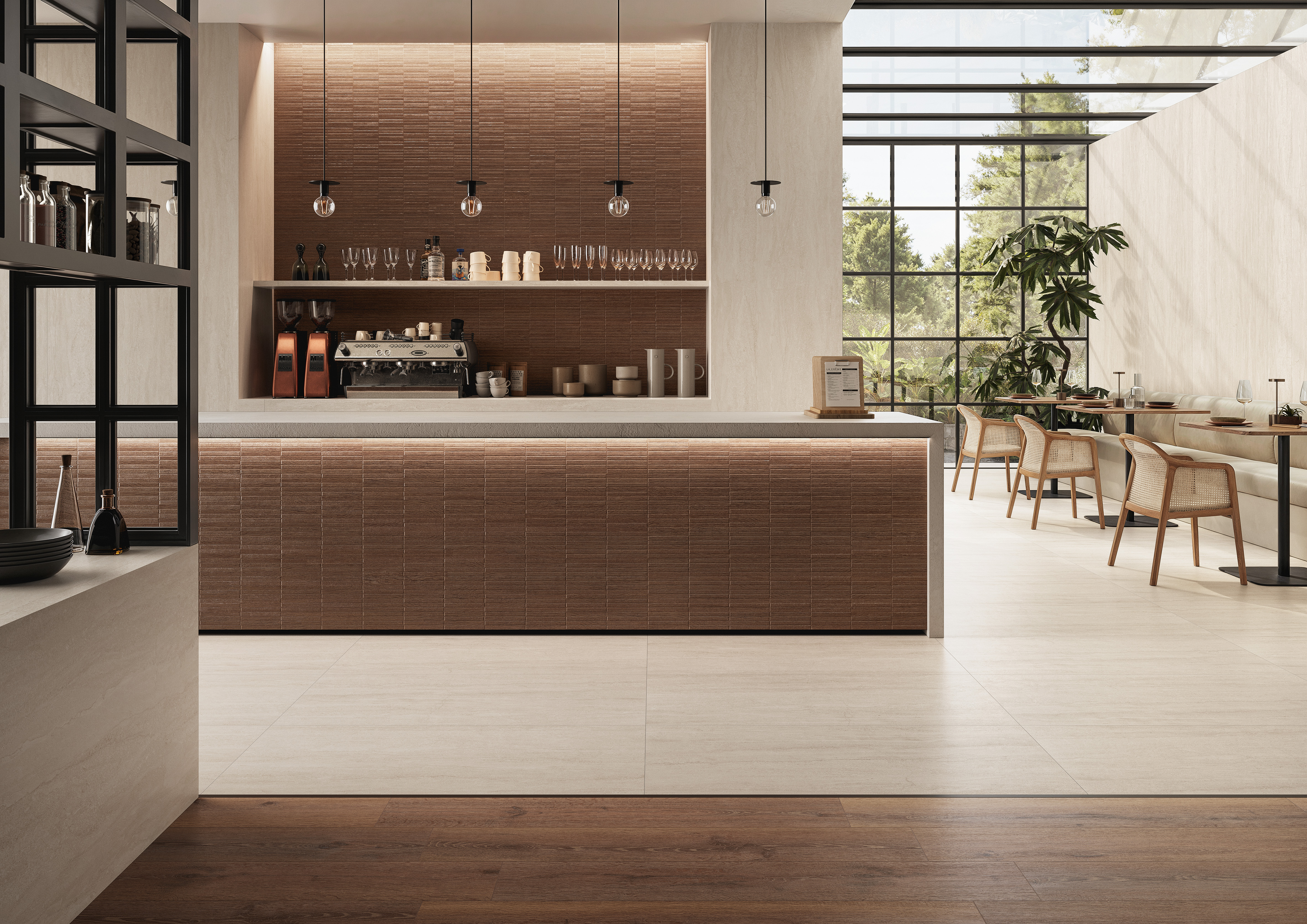 Petraluna is a refined ceramic reinterpretation of an oolitic limestone formed in marine environments during the Jurassic period. Distinguished by a unique texture composed of ooliths, calcium carbonate and fine flint inclusions, it is characterised by delicate ivory-white tones and subtle natural veining. The collection is produced using RealEffect technology and comes in a slim 7 mm thickness, offering a perfect balance of style, practicality and innovation.