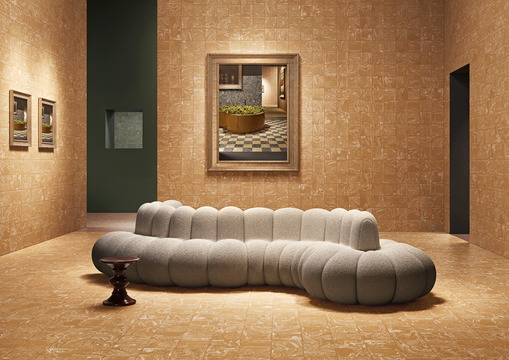 Здесь керамика возвышается до уровня настоящего произведения искусства, заключённого в непрерывное и инновационное повествовательное пространство.