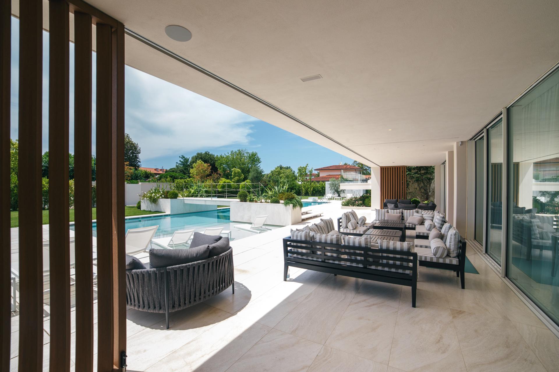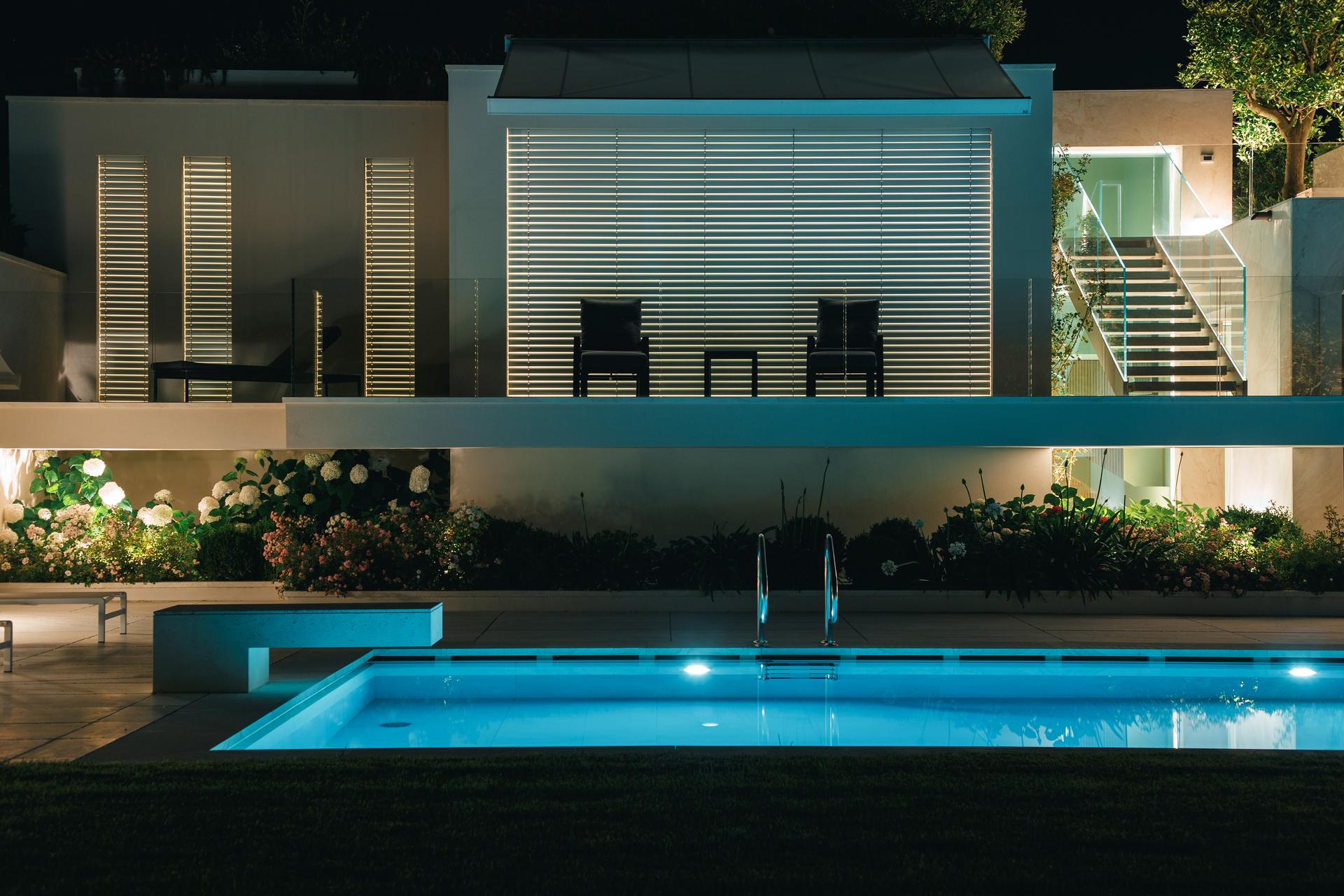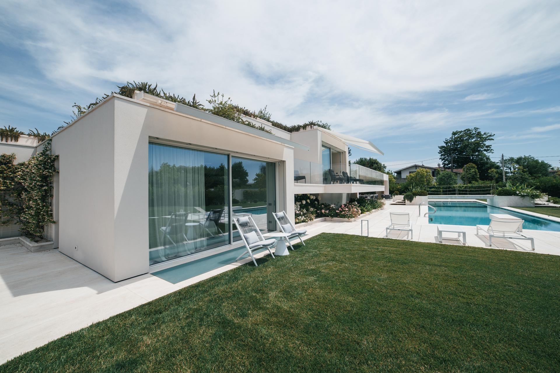 “The pure white of the Apuan Alps is echoed in the villa’s façades, in the pool tiling and in the patio decking,” explains Tanzini. “For the swimming pool, I chose the Calce collection from Laminam in the colour Avorio. Its texture and tone perfectly complement the building’s uniform, compact stone-like surface.”