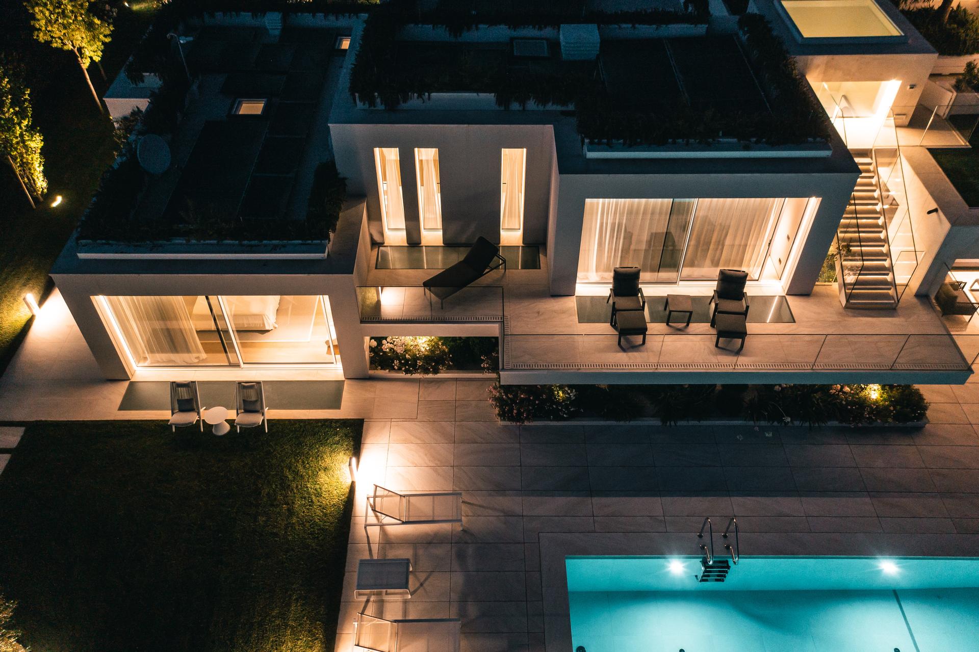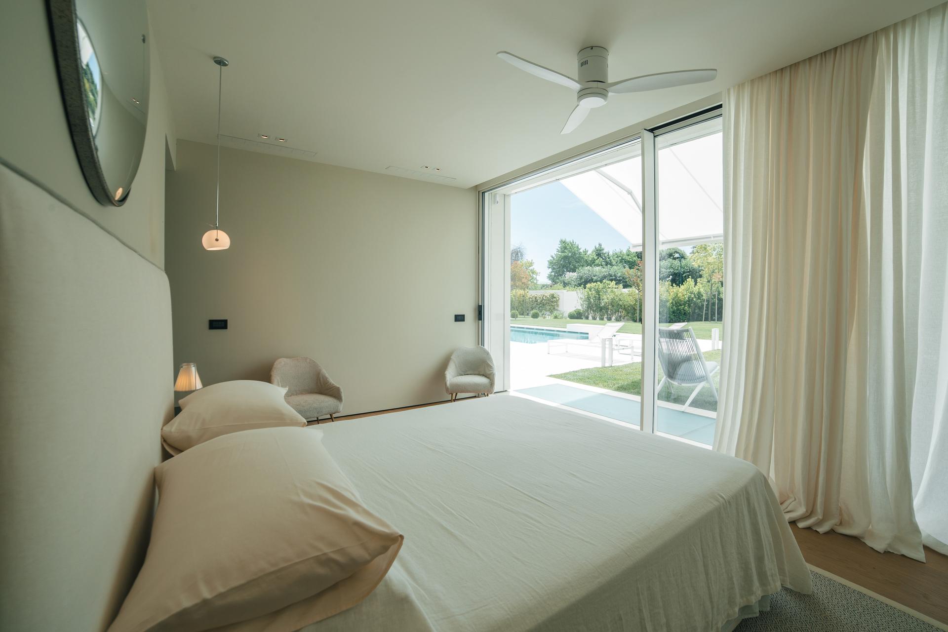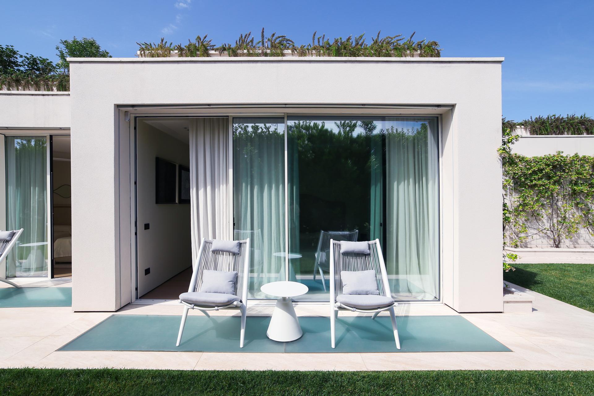 “The pure white of the Apuan Alps is echoed in the villa’s façades, in the pool tiling and in the patio decking,” explains Tanzini. “For the swimming pool, I chose the Calce collection from Laminam in the colour Avorio. Its texture and tone perfectly complement the building’s uniform, compact stone-like surface.”