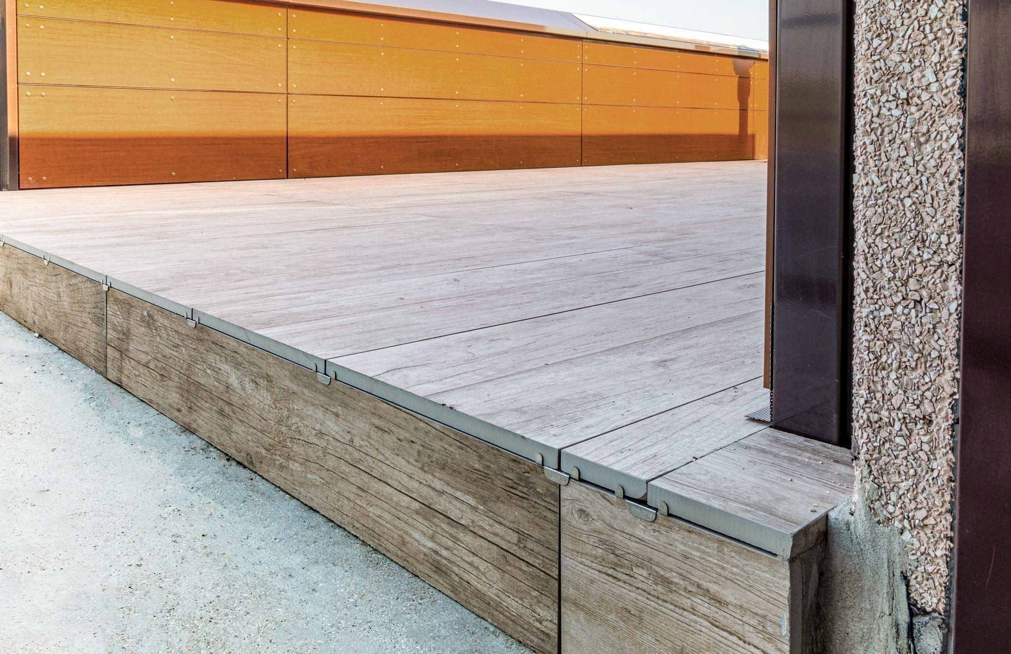 Per la realizzazione della terrazza panoramica, con le sue pavimentazioni in gres porcellanato di formato 40×120 cm per 2 cm di spessore, è stata coinvolta Impertek Srl, azienda della provincia veneziana specializzata in edilizia e nella produzione completamente Made in Italy di supporti regolabili per pavimentazioni esterne, realizzati in materiale riciclato e nuovamente riciclabile.